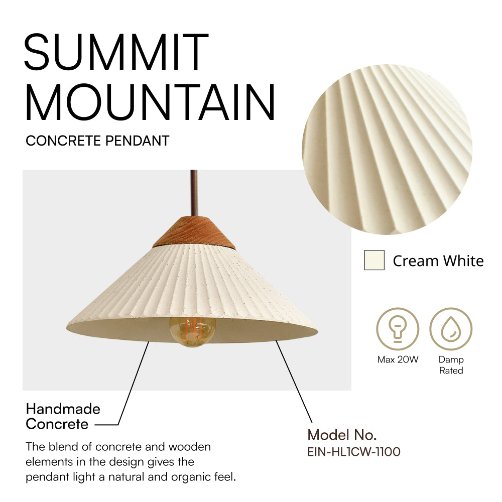 The EIN-HL1CW-1100 Concrete Hanging Pendant Light offers a perfect fusion of industrial concrete and warm wood accents, making it an ideal addition to contemporary and minimalist interiors. With a sleek cream white finish, this pendant light brings an elegant yet raw aesthetic to kitchens, dining areas, entryways, and commercial spaces.
