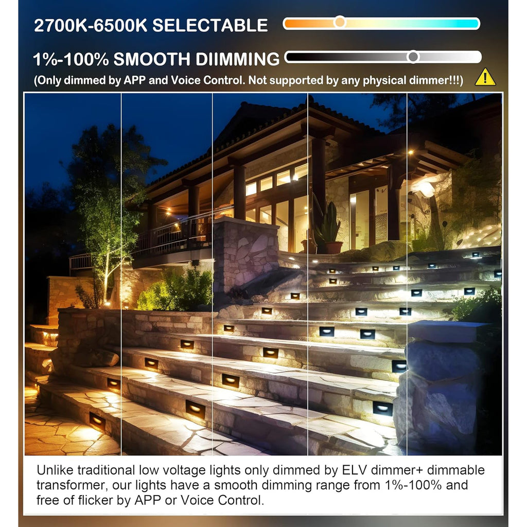 STRA07 6 Pack 3W RGBCW Color Changing 2700K-6500K Rectangular Waterproof Horizontal LED Stairs Step Light Fixture