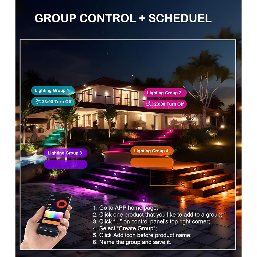 The STRA07 3W RGBCW Color Changing 12V Modern Step Lights are great for both design and safety! We have the perfect step light fixtures to decorate your stairs as well as walls. This heavy-duty cast concrete step lights come with a wide range of CCT and RGB color, the light is available to 8 scenarios, which meets your different lighting needs, reading, working, sleeping or dancing etc. You can also make it sync to music, lighting would follow the change of the music beats, having fun with family and friends now!