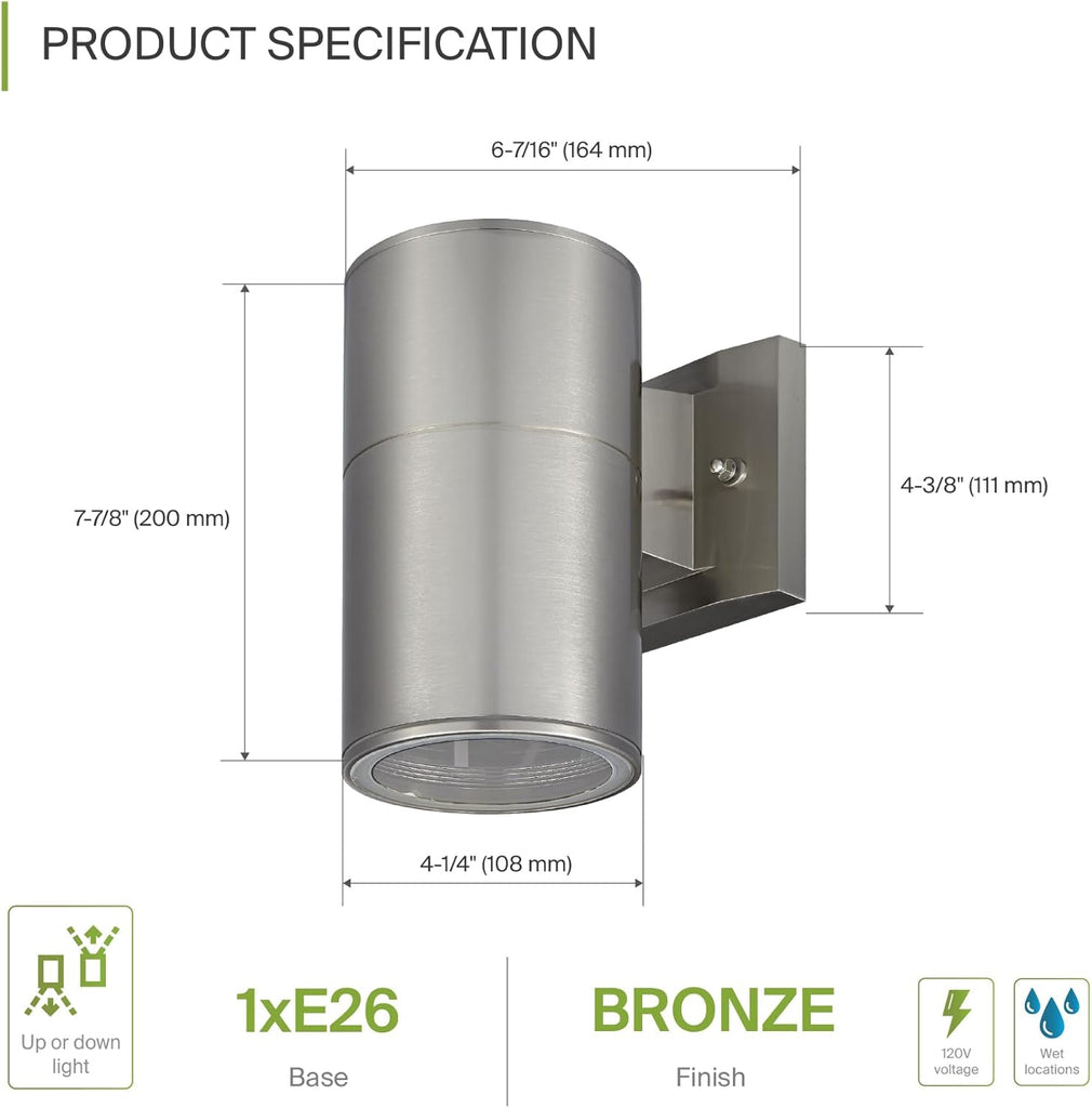 SCSH03 120V Line Voltage LED Aluminum Cylinder Up Down Light Mono Directional Sconce Lighting Medium Base Sockets