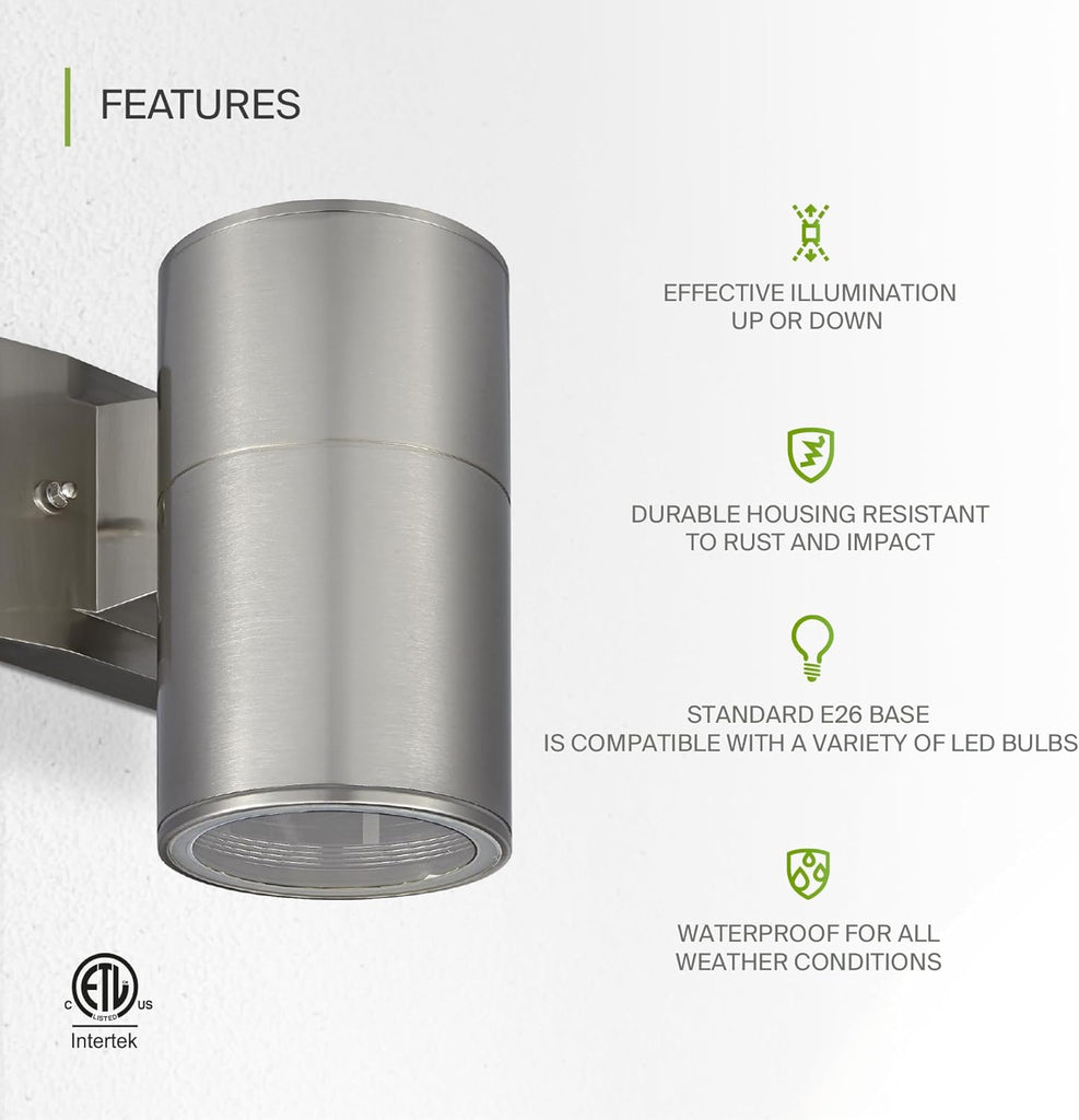 With UL certification, it guarantees safe and dependable use, while its stainless steel construction ensures long-term durability against weather conditions. Suitable for porches, patios, gardens, garages, or entryways, this sconce provides both welcoming illumination and decorative elegance.