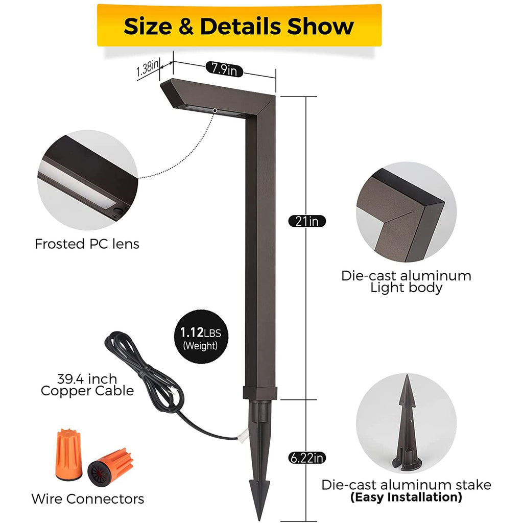 With Adjustable 3CCT 3000K, 4000K, or 5000K LED integrated chips, these low voltage LED pathway lights produce a soft light that is free of glare. With modern appearance design, this light will not only light up your garden at night, but also comfort you with high-end atmosphere in the day.