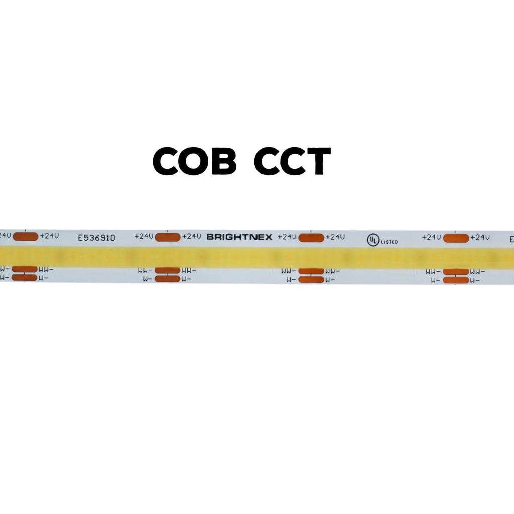 This Tunable CCT Dotless COB LED Strip Light uses the new FCOB technology to produce seamless linear lighting with no hot spots or "dead spots". Perfect for outdoor LED strip lighting applications, it offers uniform brightness and reliability even in exposed environments.On traditional LED strips, LED diodes are spaced apart creating hot spots that are visible when looking at the strip, but this Dotless LED strips give a consistent light throughout the entire length.
