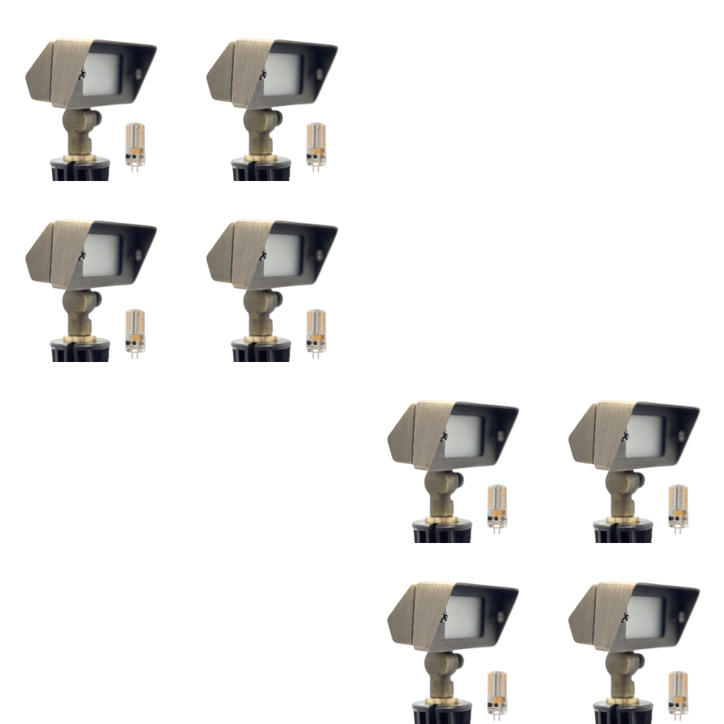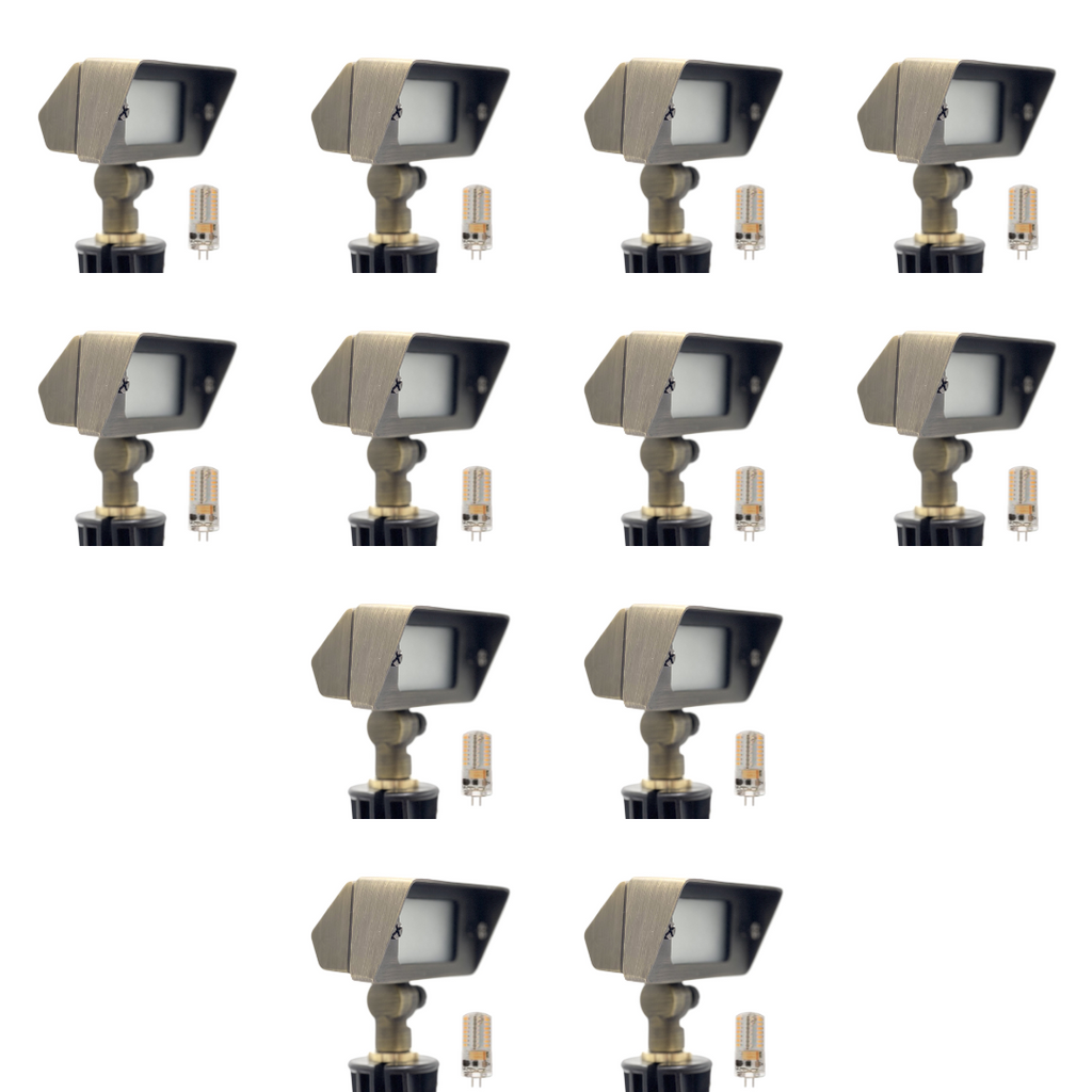 FLBP02 Tulay Antique Brass Squared Flood Light 4x/8x/12x G4 2W Dimmable 2700K Package Low Voltage Landscape Lighting