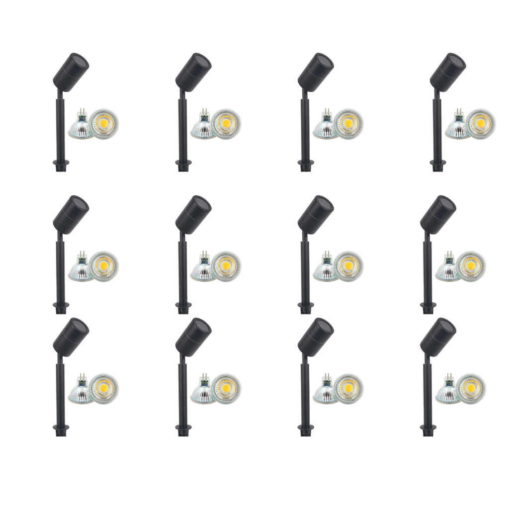A bi-pin base fits any MR16 12V LED Bulb for your preferred light temperature and color to be added. Its size is 8.8" (Length) x 3.625" (Width) x 2.31" (Height) and an ABS ground spike is included for staking into the ground. Its installation process is easy and is IP65 waterproof, so it's very useful for outdoor wet locations. It’s an ideal choice for general site lighting, alleys, loading docks, doorway, bus stations, streets, pathways, and parking areas.