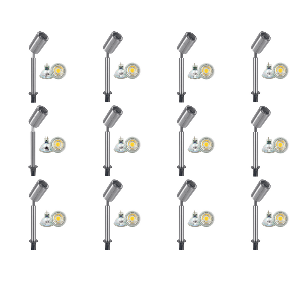 SPS02 4x/8x/12x Package 12V Low Voltage LED Stainless Steel Spotlight Adjustable Up Lighting Fixtures with 5W 3000K Bulb