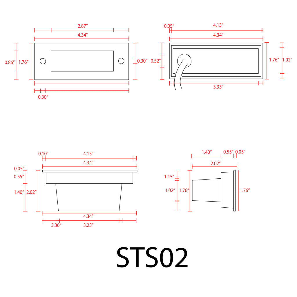 STS02 12V Low Voltage Outdoor Recessed Stainless Steel Brick Wall Light 3000K Warm White Integrated LED Step/ Stair Lighting Fixture