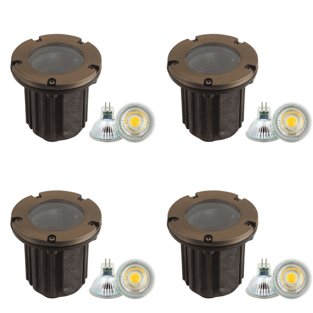 UNB04 4x/8x/12x Package Cast Brass 12V Low Voltage Round LED In-Ground Well Light IP65 Waterproof with 5W 3000K Bulb