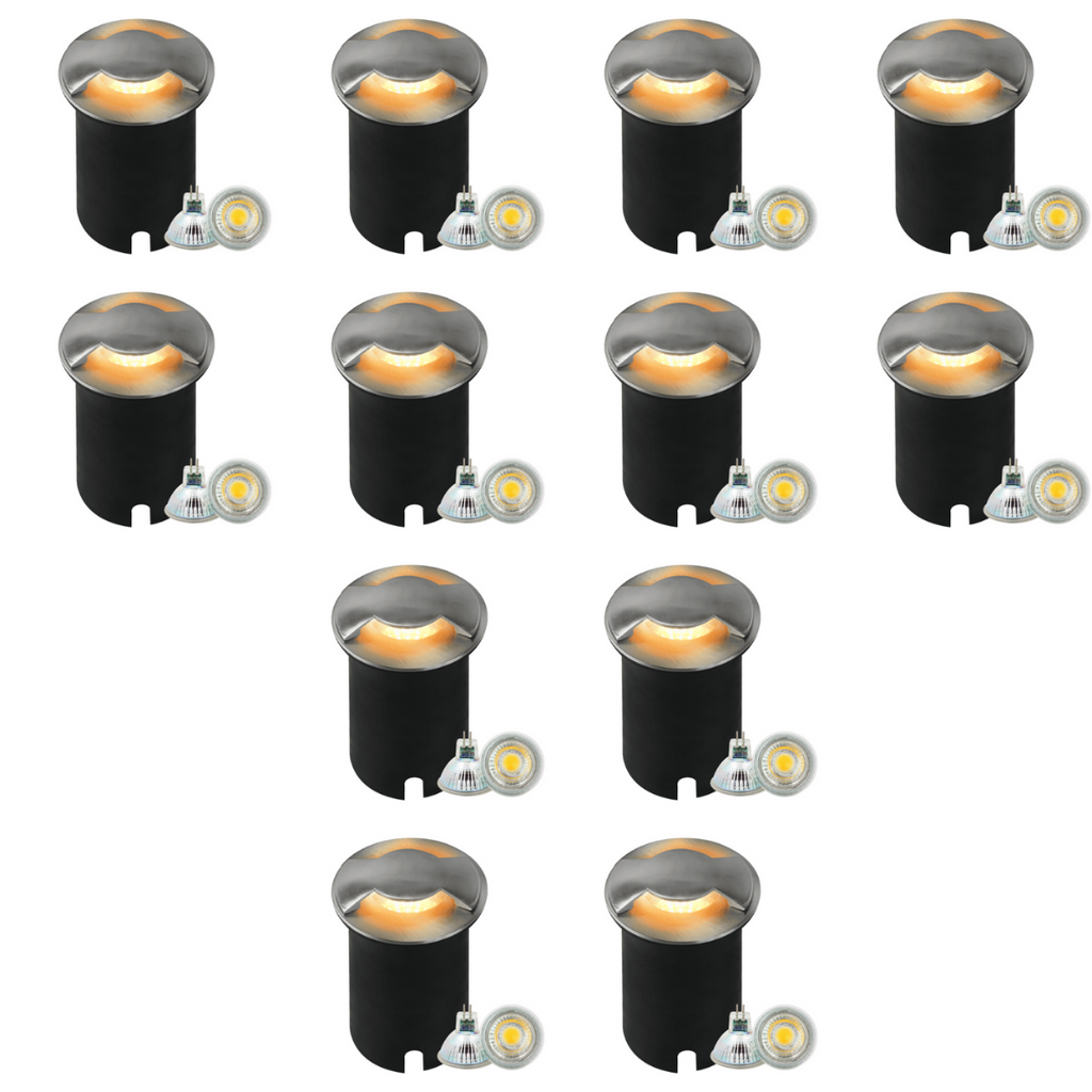 UNS04 4x/8x/12x Package Stainless Steel Bi Directional Two Slit In-Ground 12V Low Voltage LED In Ground Landscape Lighting with 5W 3000K Bulb