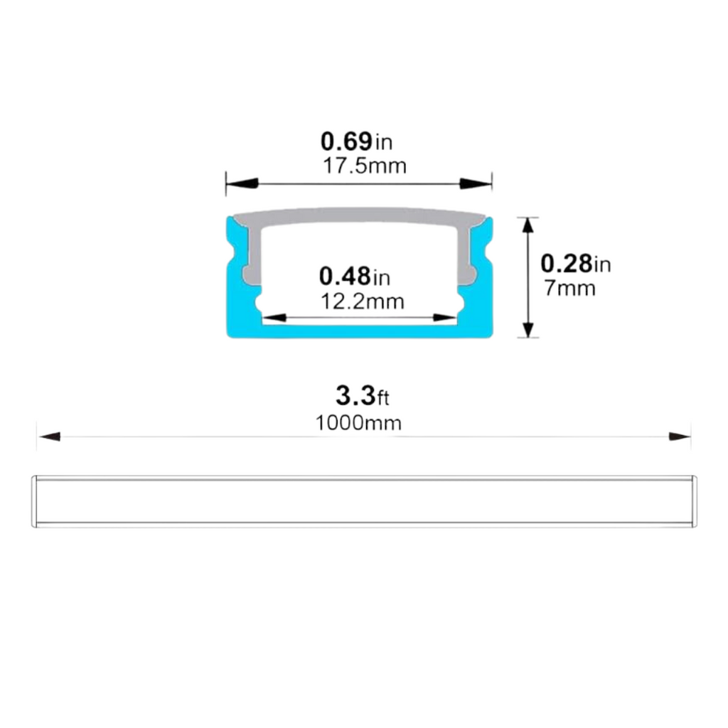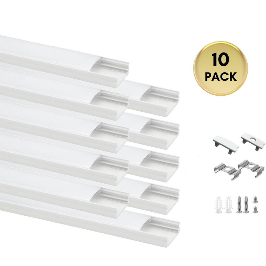 AC06 U-Shaped Silver or White Rectangular Aluminum Channel 3.3FT/1M For Max 12mm LED Strip Lights Pack of 10 or 20
