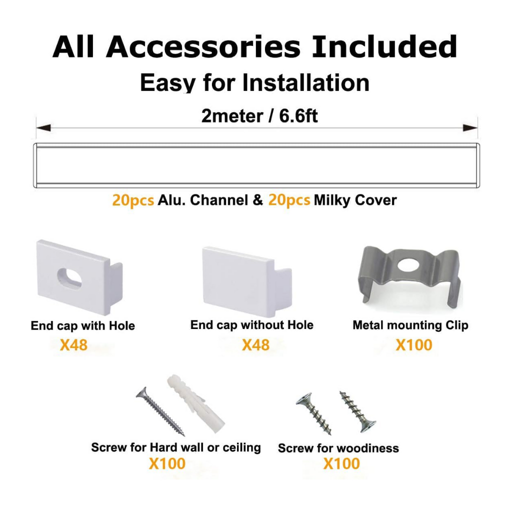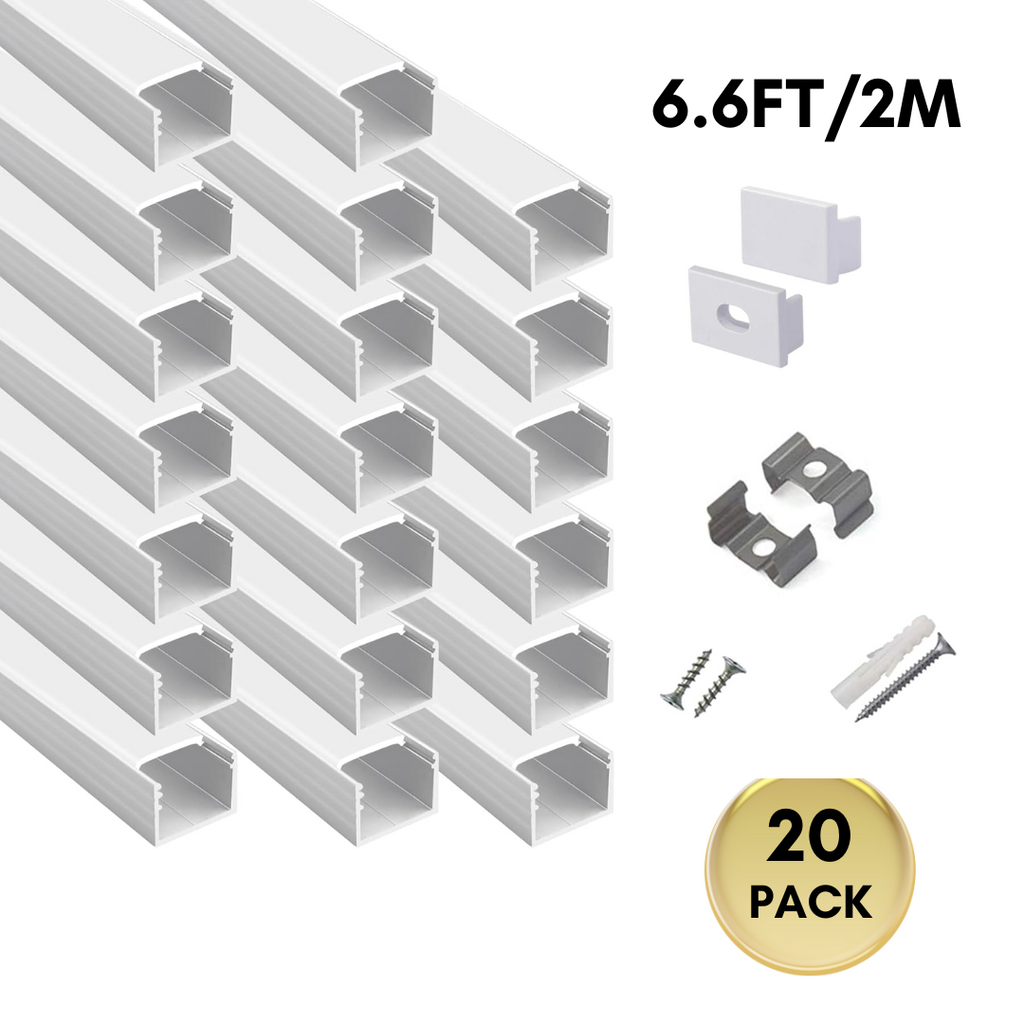 - 20 x 2m/6.6ft Aluminum Channels with Covers