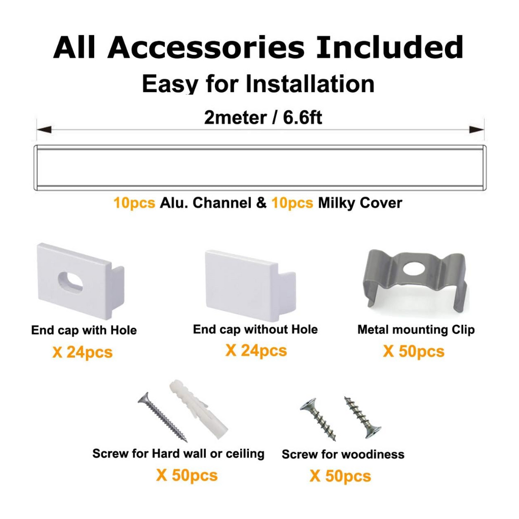 - 10 x 2m/6.6ft Aluminum Channels with Covers