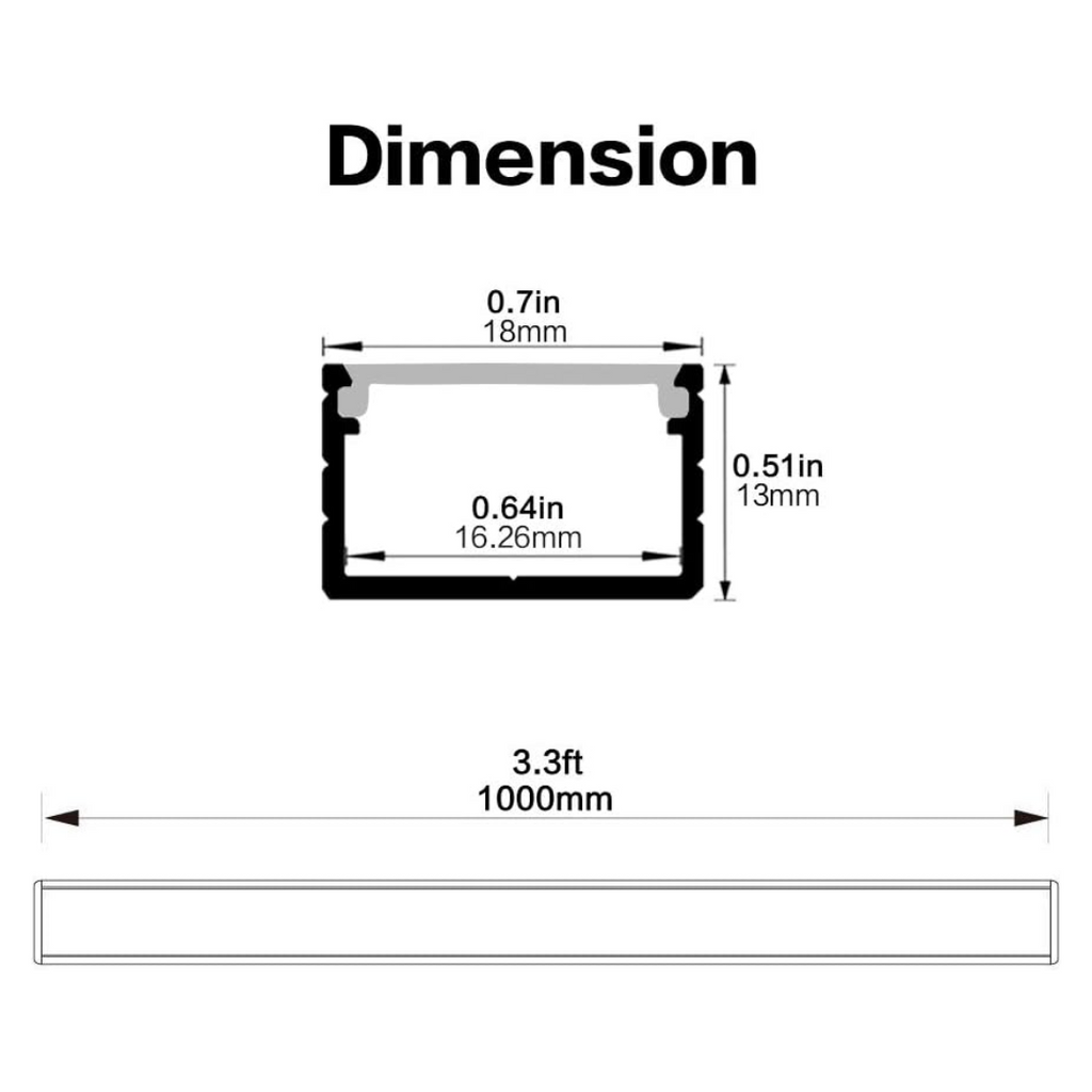 AC07 U-Shaped Square Aluminum Channel 3.3FT/1M and 6.6FT/2M For Max 16mm LED Strip Lights Pack of 10 and 20