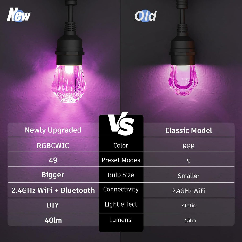 The IC-controlled string lights allow each LED bulb to display different colors simultaneously. Adjustable brightness lets you create a truly personalized lighting experience. Includes 2 spare LED COB panels for easy replacements.
