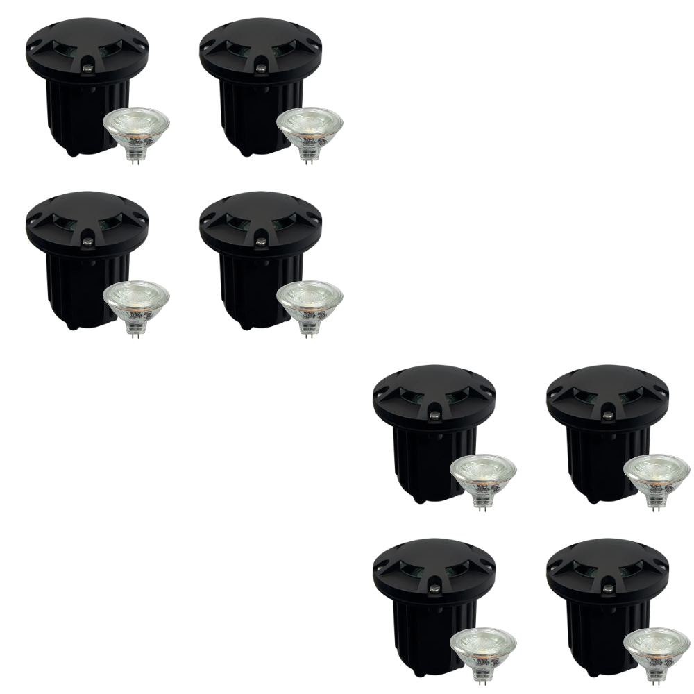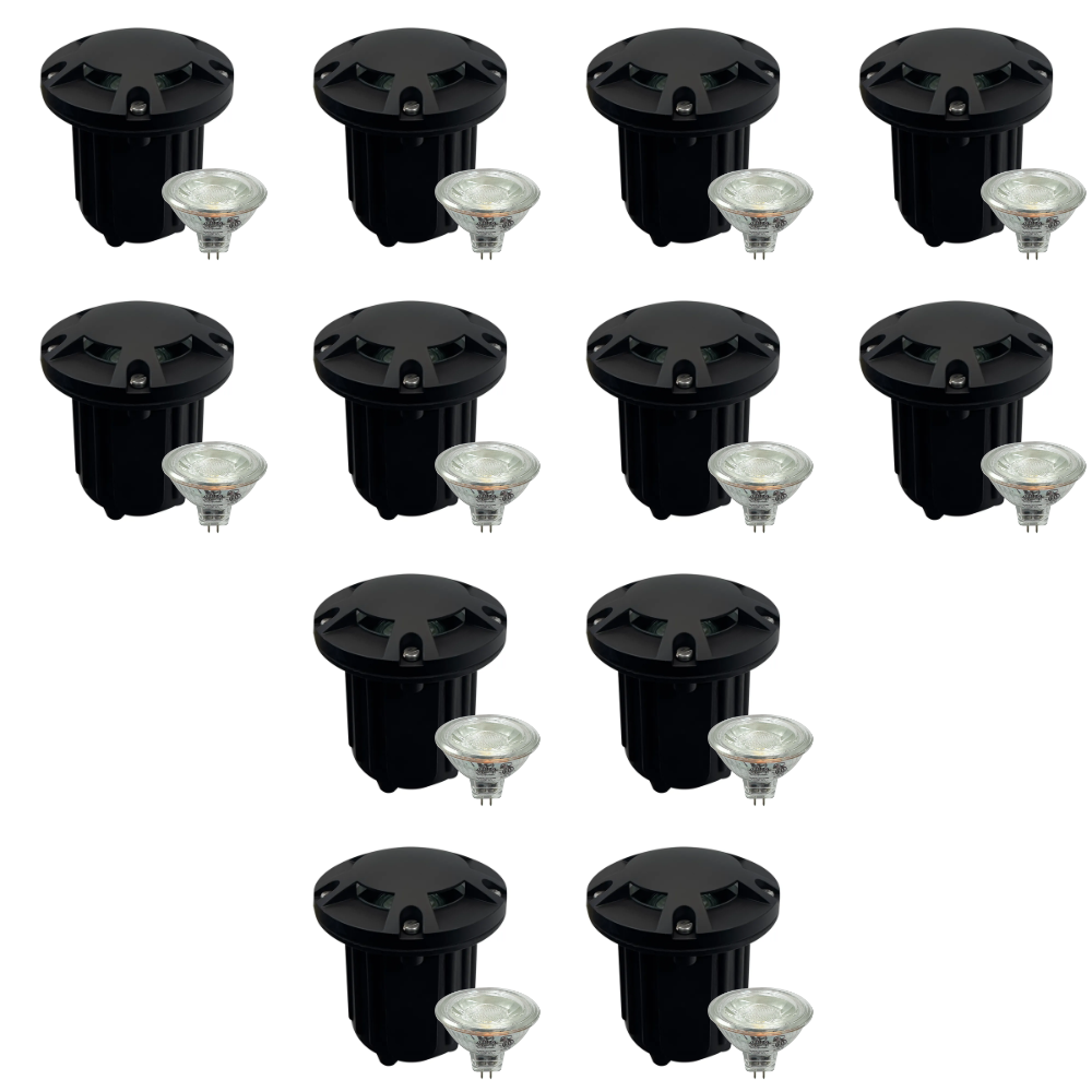 An MR16 12V light bulb is required and can create a pleasant atmosphere. The dimensions of the in-ground spotlight are 5" (L) x 4.875" (W). This round paver lights can easily be assembled in Garage / Basement, Hallway, patio, path, etc since it's IP65 waterproof and ETL listed.