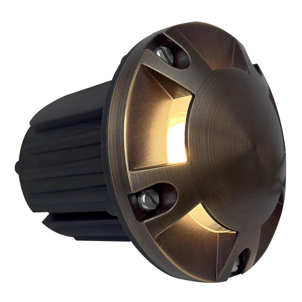 This strong high-quality Underground Well Light fixture will enlighten your outdoor space with its sophisticated look and durable design. This landscape LED in ground light is made up of heavy-duty cast brass material with a Natural Brass finish and a multi directional face containing 5 slits which gives an elegant design with the illuminated light.
