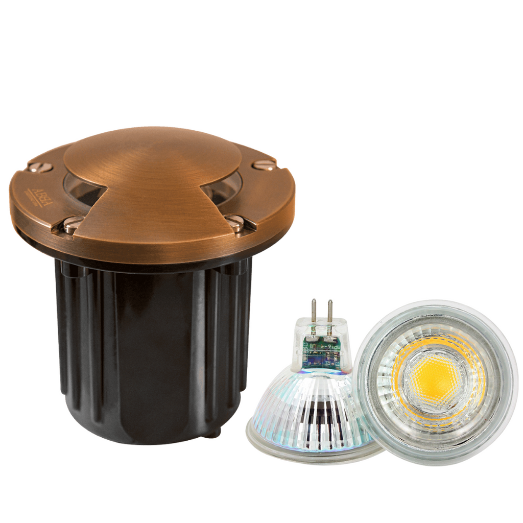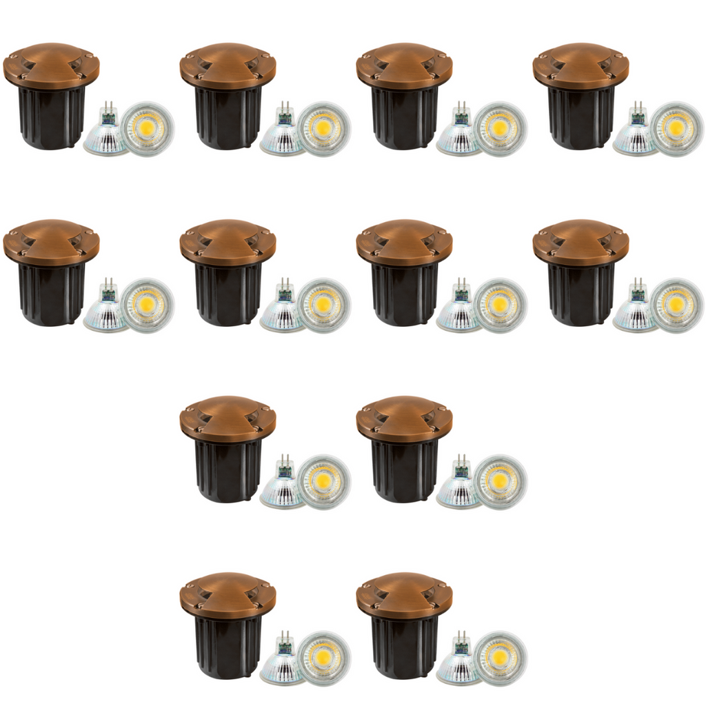 UNB10 4x/8x/12x Package Cast Brass Round Bi-Directional 12V Low Voltage LED In-ground Well Light with 5W 3000K Bulb