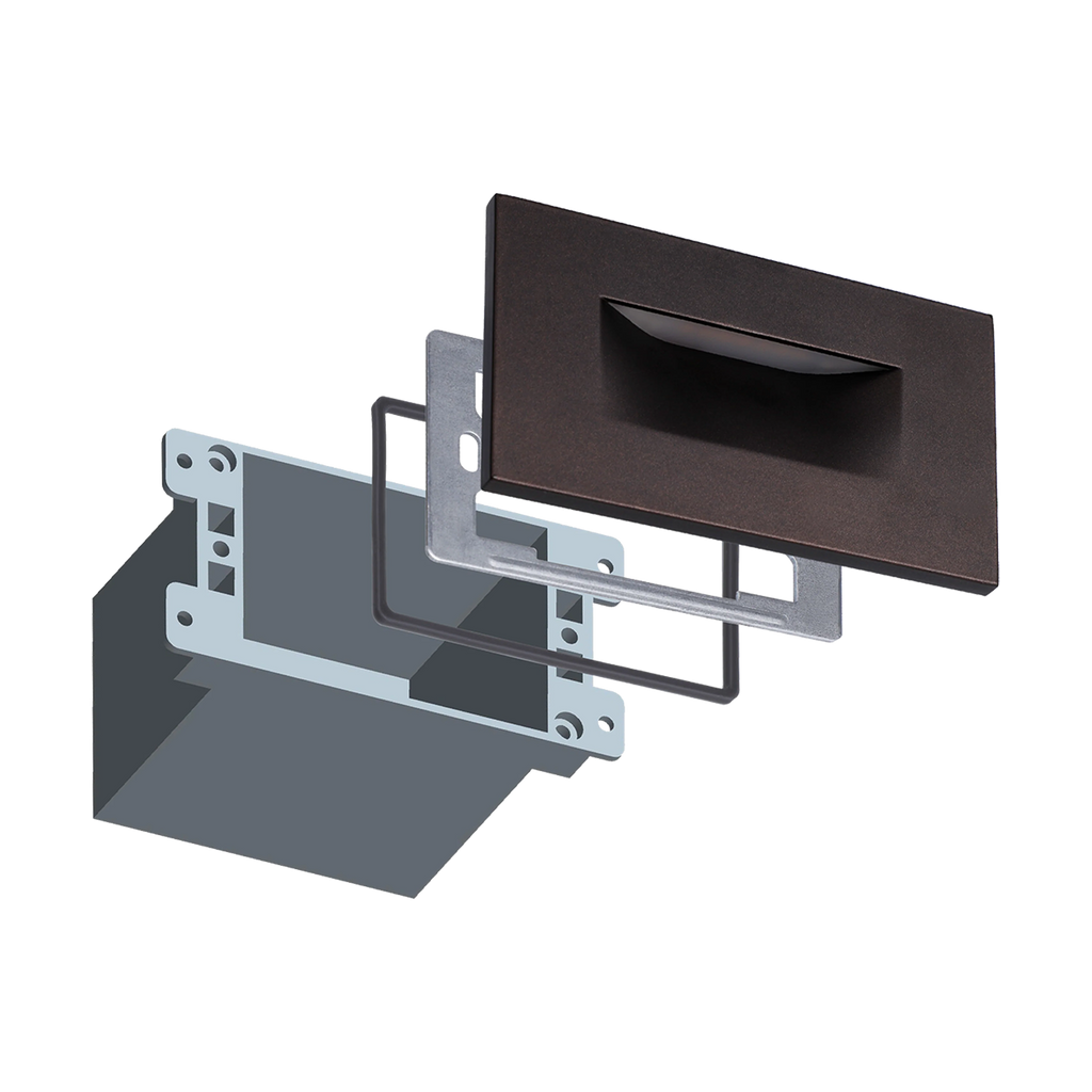 The size of this horizontal LED step light is 2.875 (H) x 4.75” (W) x 1.5” (D). It's the perfect size for a standard bell box, so its location can be pre-installed and wired and ready for the fixture installation. This rectangular step light has a waterproof rating of IP65 so the moist weather won't be a fact to damage. The short cable is connected from its backside for low voltage connection. This high-quality product will serve you greatly.