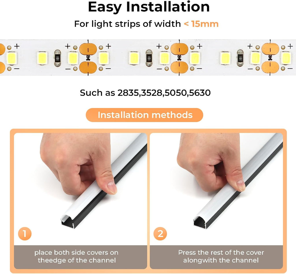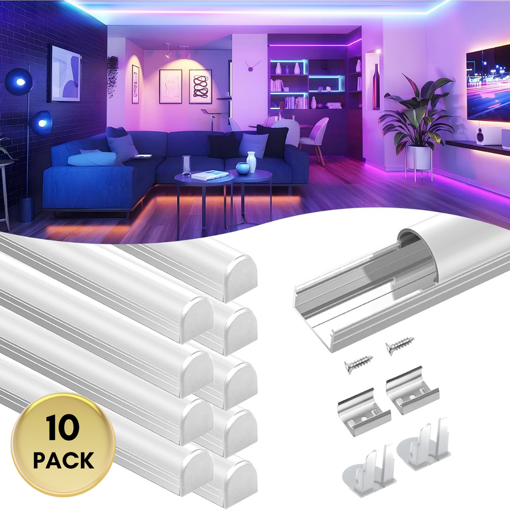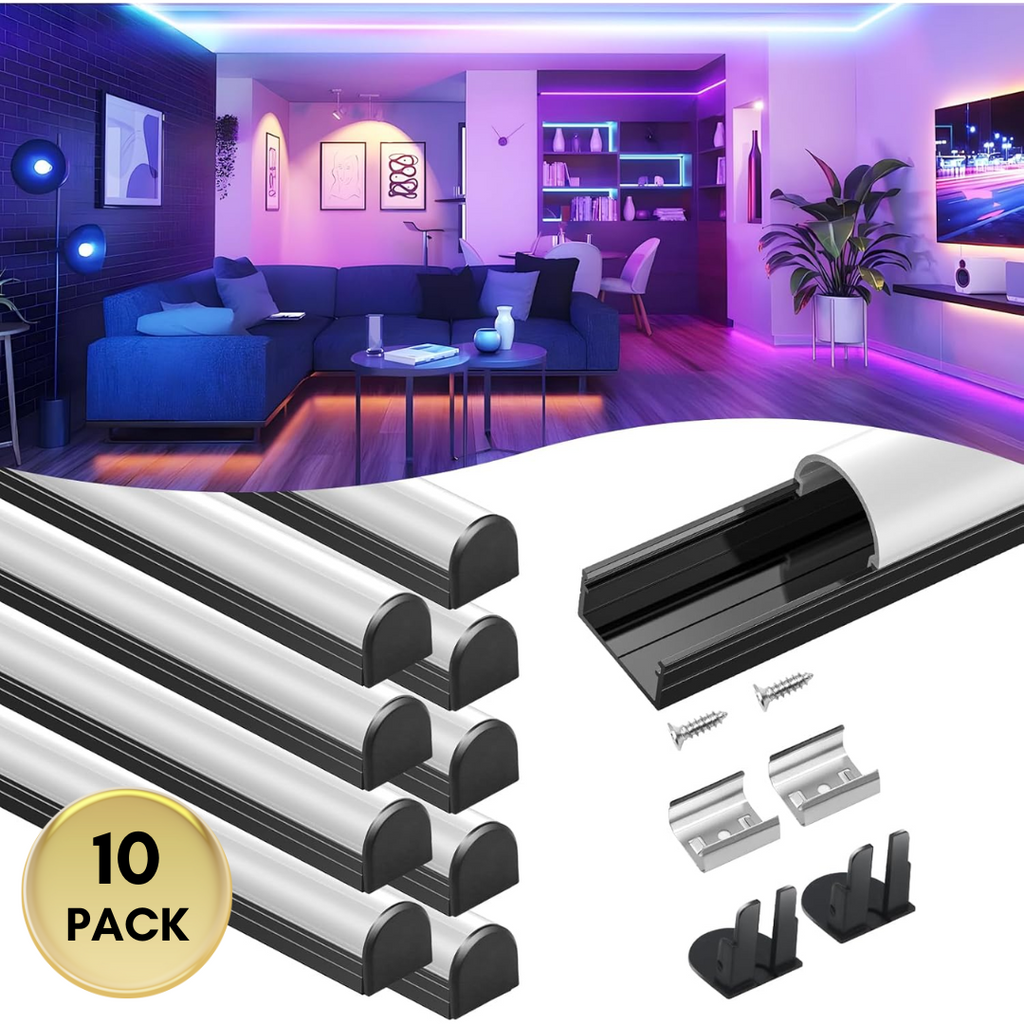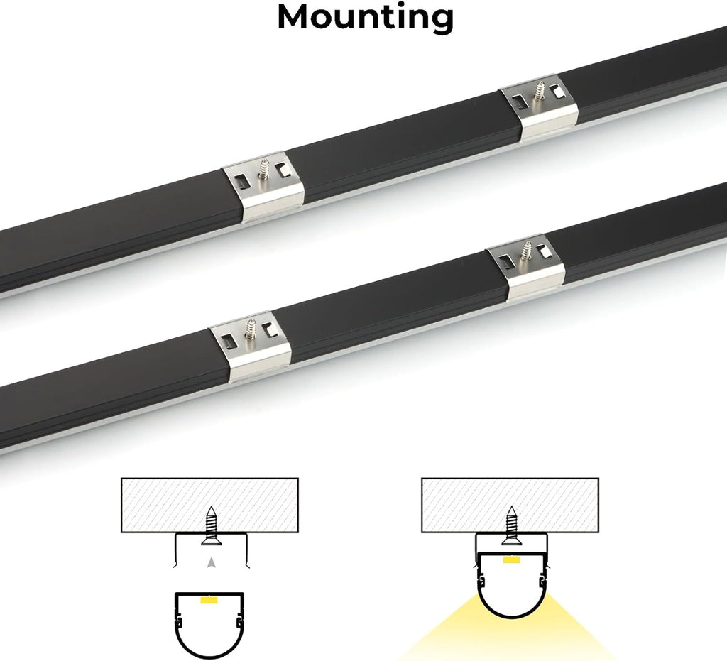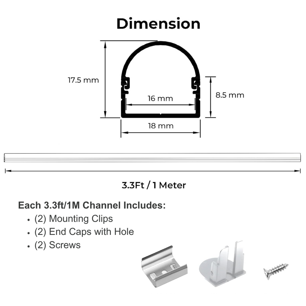 • Included: 6 or 10 Pack of 1M (3.3ft) Aluminum Channels with Diffusers, and each has 2 End Caps, 2 Mounting Clips and 2 Mounting Screws