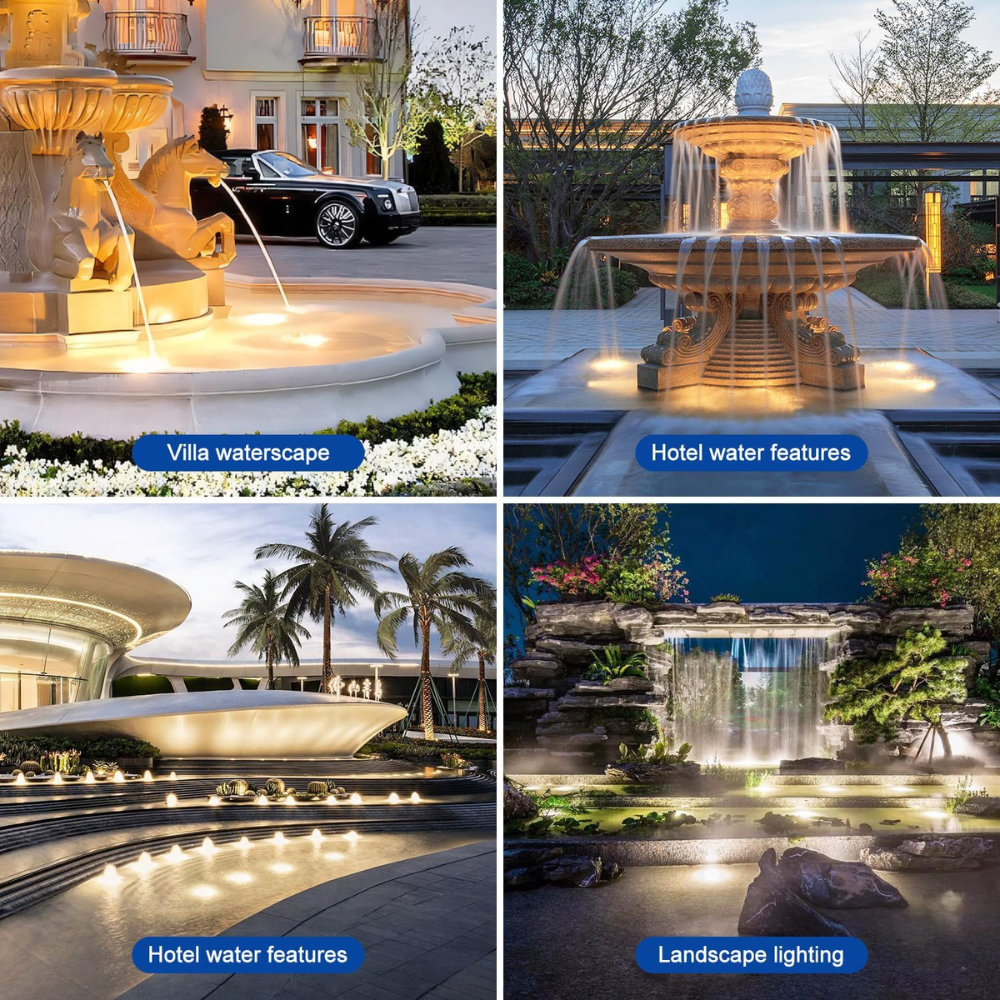 ULBA04 6W, 12W or 24W 3000K Warm White LED Integrated Underwater Pond Light is a game-changer in underwater lighting, providing exceptional brightness and durability. Built from high-quality aluminum for long-lasting performance, it features a hassle-free, hardware-free mounting system, along with extra shielding and a glare guard for optimal lighting. This light is also perfect for outdoor fountain lights, enhancing the beauty and vibrancy of any water feature with its superior illumination. Comes with a 3.28ft connecting cable.