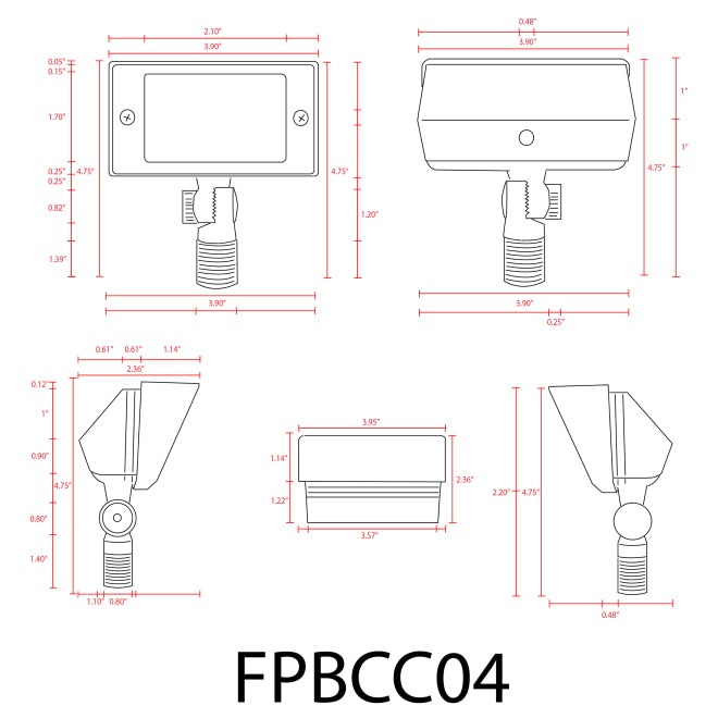 FPBCC04 Cast Brass 3CCT Adjustable 2W-7W Rectangular Built-In LED Flood Light 12V Low Voltage Fixture
