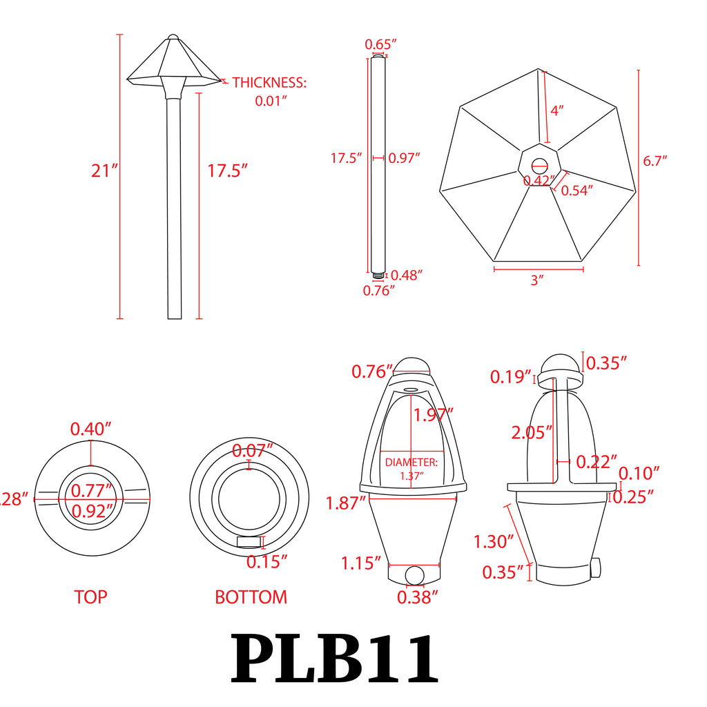 The PLB11 LED brass mushroom path & area light with ABS ground spike stake with a chiseled design that consumes less energy than incandescent lights and is IP65 waterproof, making it a reliable and cost-saving lighting fixture for your home's exterior space. This high-quality antique style pathway landscape lights is made of heavy-duty cast brass, giving it a solid construction for durability and a lifetime of beauty. Its hat size is 6.5" x 3.25" and pole size is 18".
