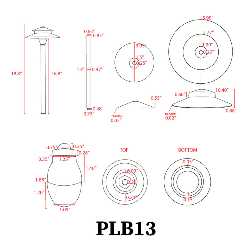 PLB13 pagoda two-tier path lights will accentuate a feeling of retro warmth with its classic brass finishing pagoda-style design to your exterior space. This high-quality LED landscape path light's body is made of heavy-duty cast brass, no powder coating just the natural patina beauty of brass which gives a solid construction for durability and lifetime of beauty.It also works exceptionally well as an LED walkway light, offering a blend of charm and illumination for paths and garden walkways.