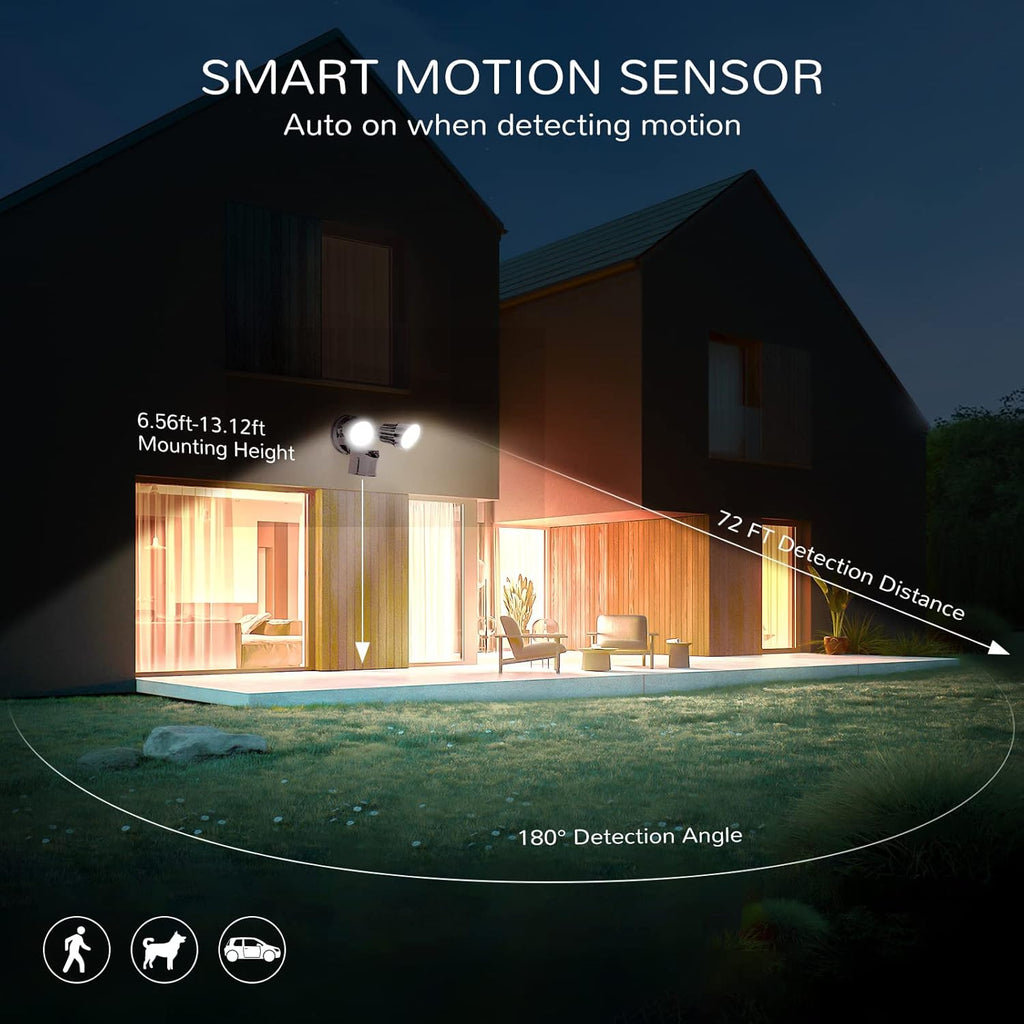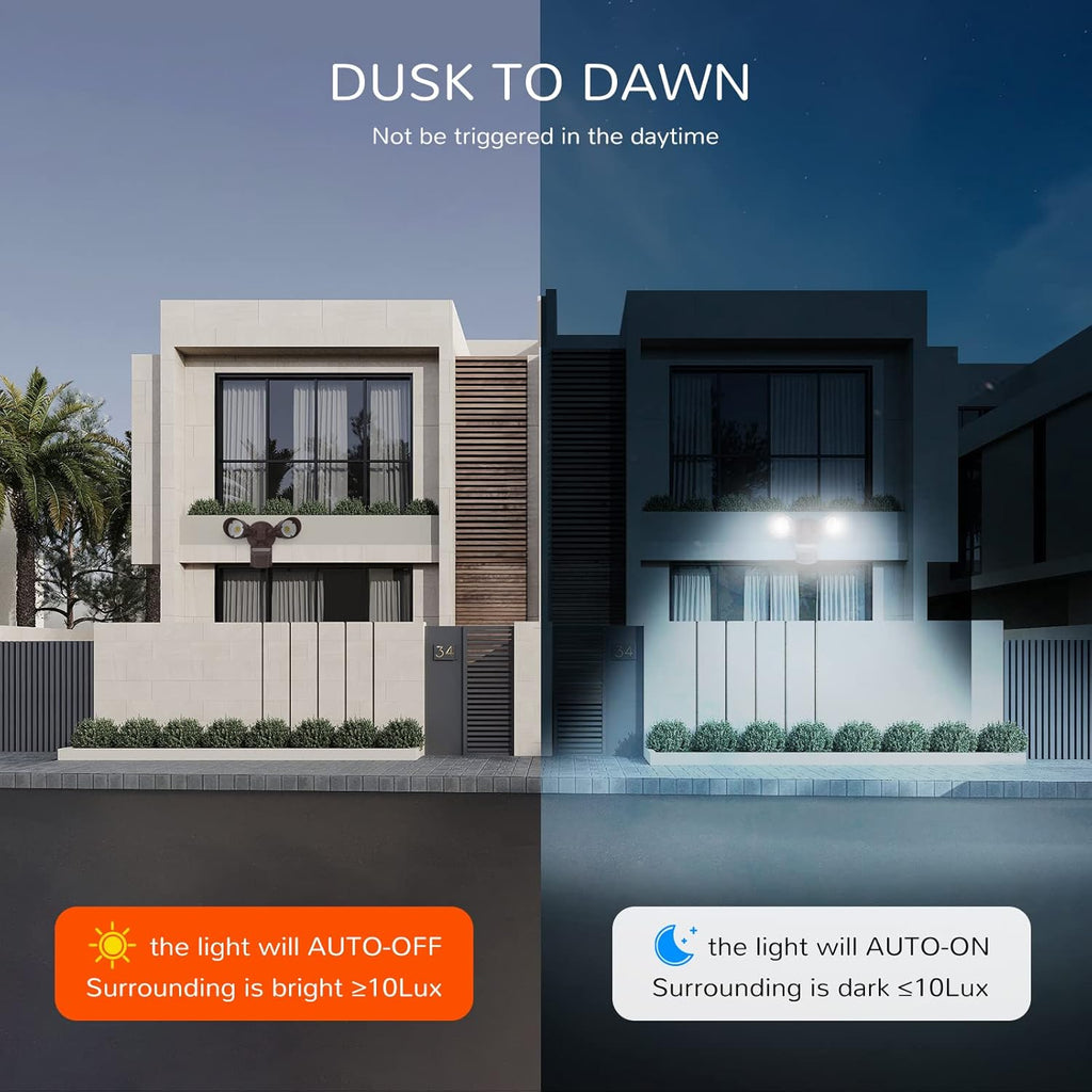 • 360° Adjustable Dual Heads: Ideal for porches, garages, courtyards, or any dark corner requiring focused lighting. Bright enough to enhance security without disturbing neighbors.