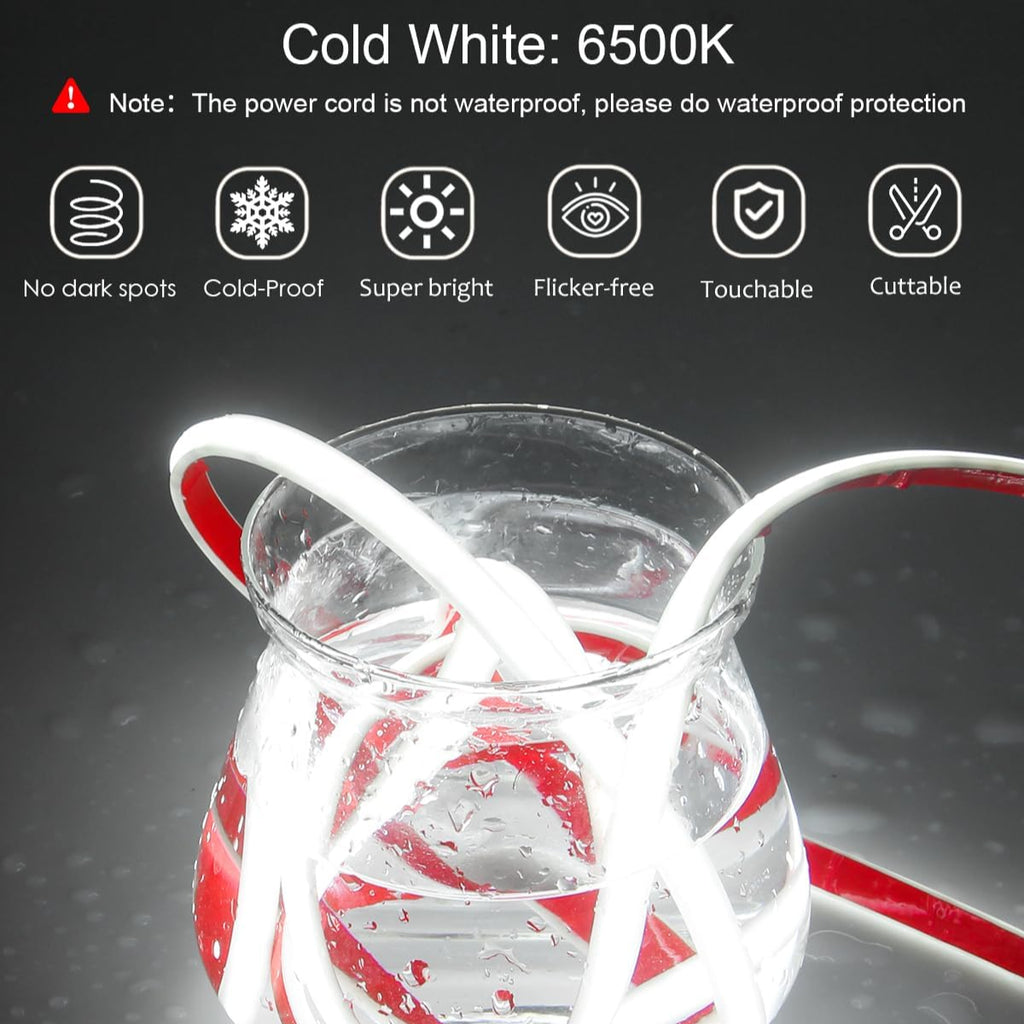 Engineered for durability and reliability, this waterproof LED strip light is coated with high-quality silicone, achieving an IP68 rating. Whether in rain, snow, or underwater environments like pools, fountains, and fish tanks, this strip light is built to last. (Note: Power cord and end parts are not waterproof—proper sealing is required for full protection.)