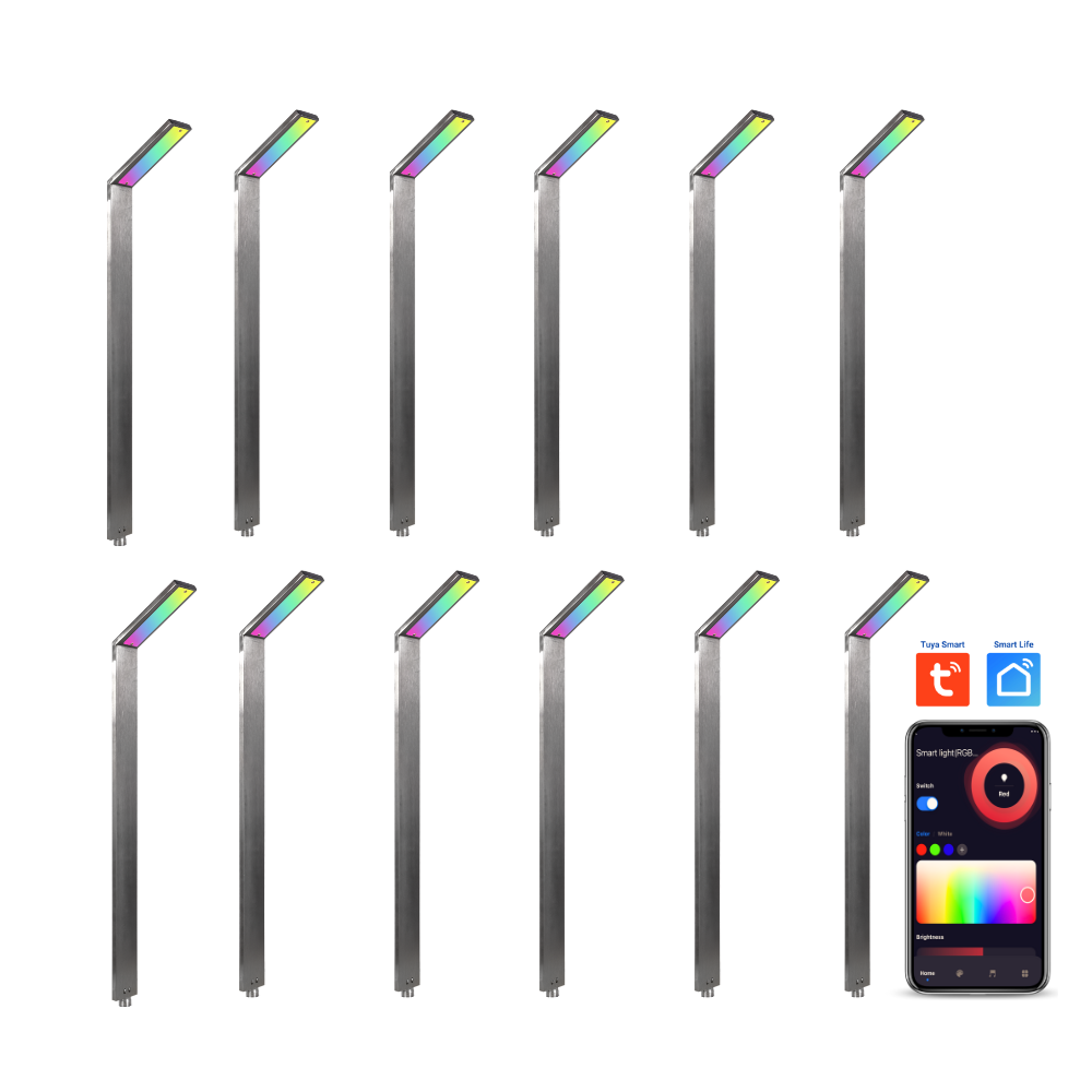 CDPSR59 4x/8x/12x Package Wi-Fi Smart RGBCW 3W Stainless Steel Directional 12V Low Voltage Pathway Light LED Bollard Landscape Lighting
