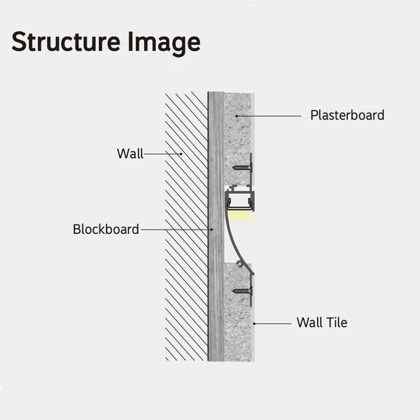 The corner aluminum channel is a smart and reliable choice for your drywall, cabinets, closets, or behind TVs and dressers. It works seamlessly with a variety of lights accessories, enhancing both functionality and style in your lighting setup.These channels can be installed anywhere.  Our rectangular aluminum channel rail can be decorated with an LED strip light of 0.54" in width. The frosted cover makes the LED strip light more fascinating and disperses the light more evenly.