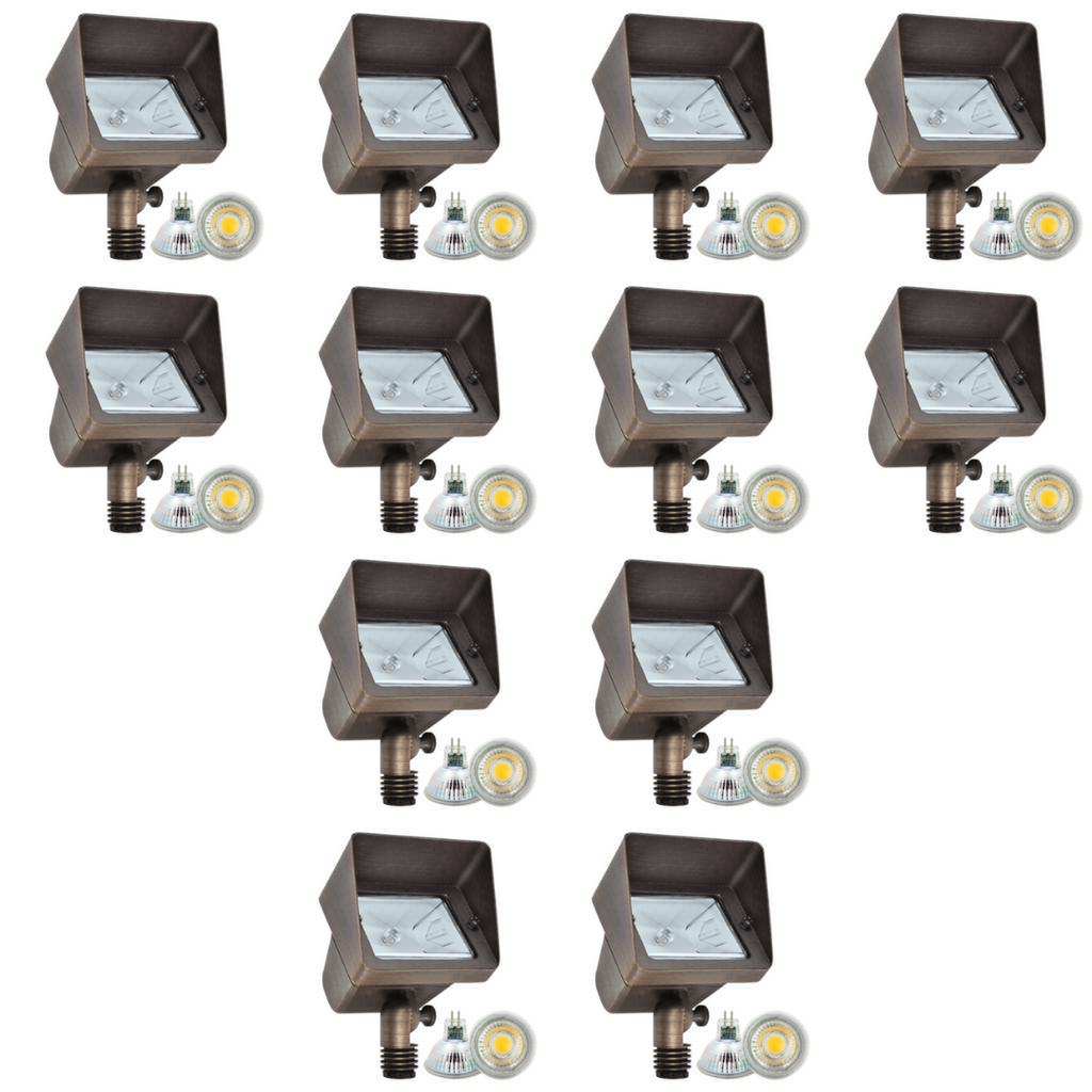 FPB05 4x/8x/12x Package Cast Brass Rectangular LED 12V Low Voltage Directional Flood Light Adjustable Landscape Lighting with 5W 3000K Bulb