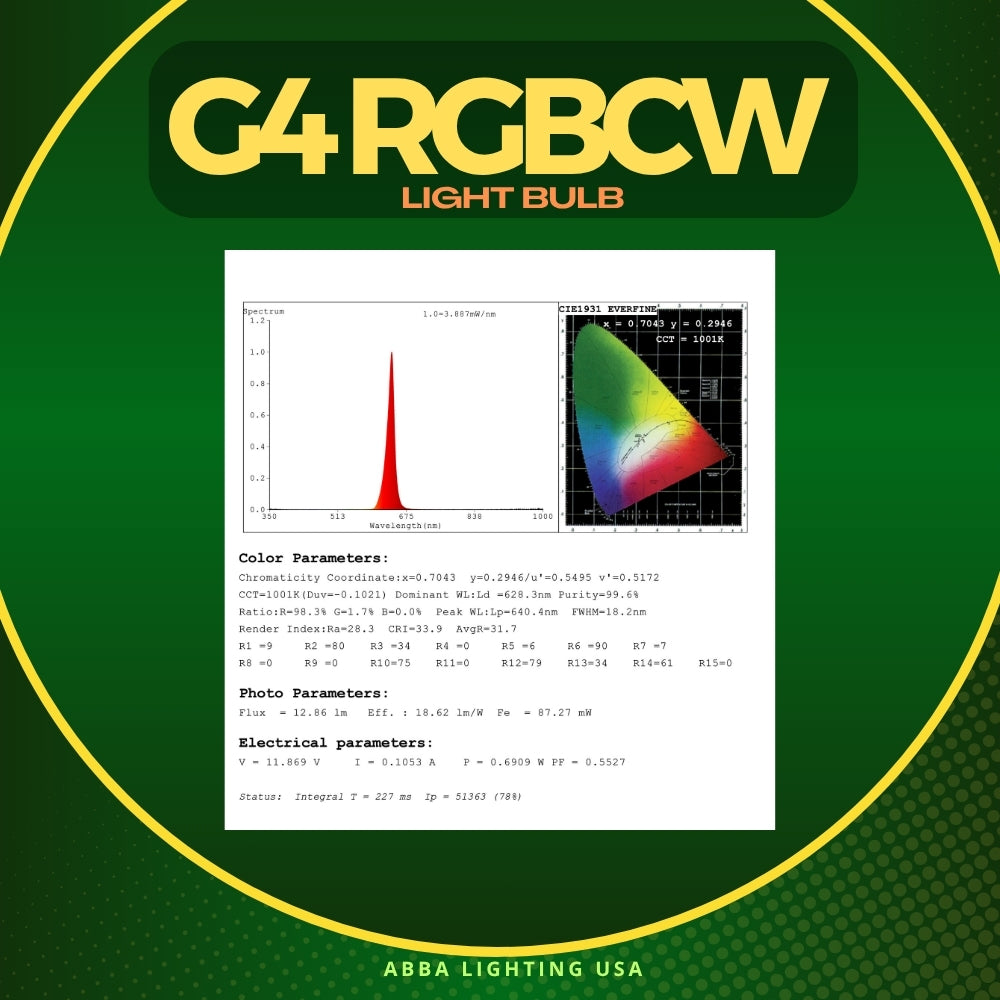 Enhance your lighting design with the G4 RGBCW light bulbs. This compact yet powerful bulb offers a wide spectrum of colors and adjustable white light, making it an ideal choice for both decorative and functional lighting applications.