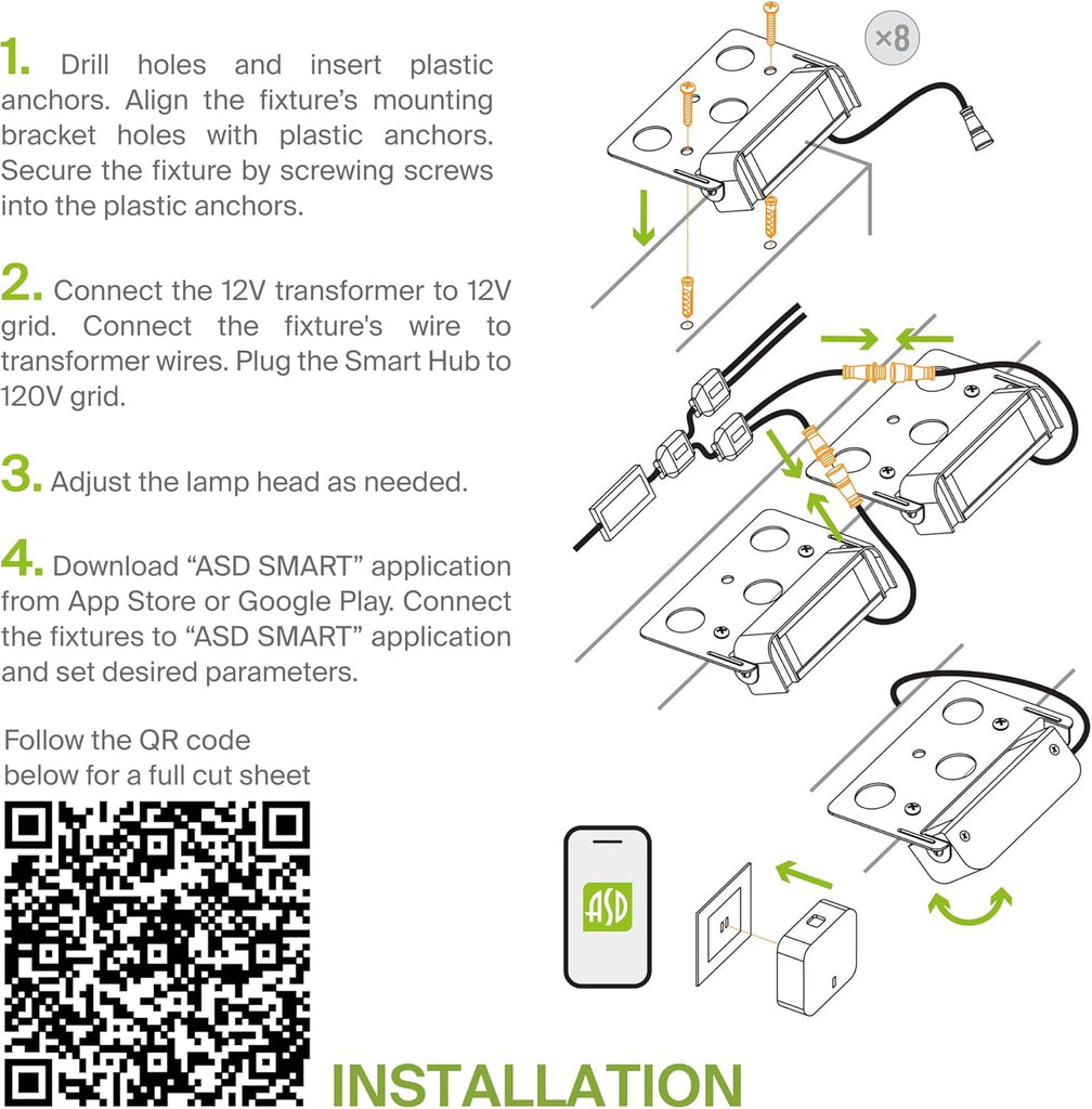 • Installation: Includes a solid bracket for secure mounting. Complies with NEC codes. Detailed installation instructions are provided in the user manual and product images.
