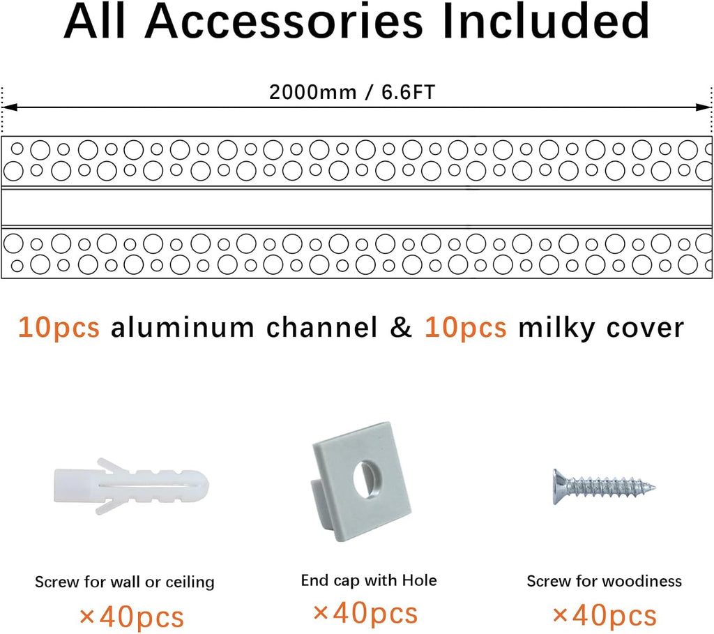 • Included: 10x 1M (3.3ft) or 2M (6.6ft) Aluminum Channels, Diffusers, End Caps and Screws
