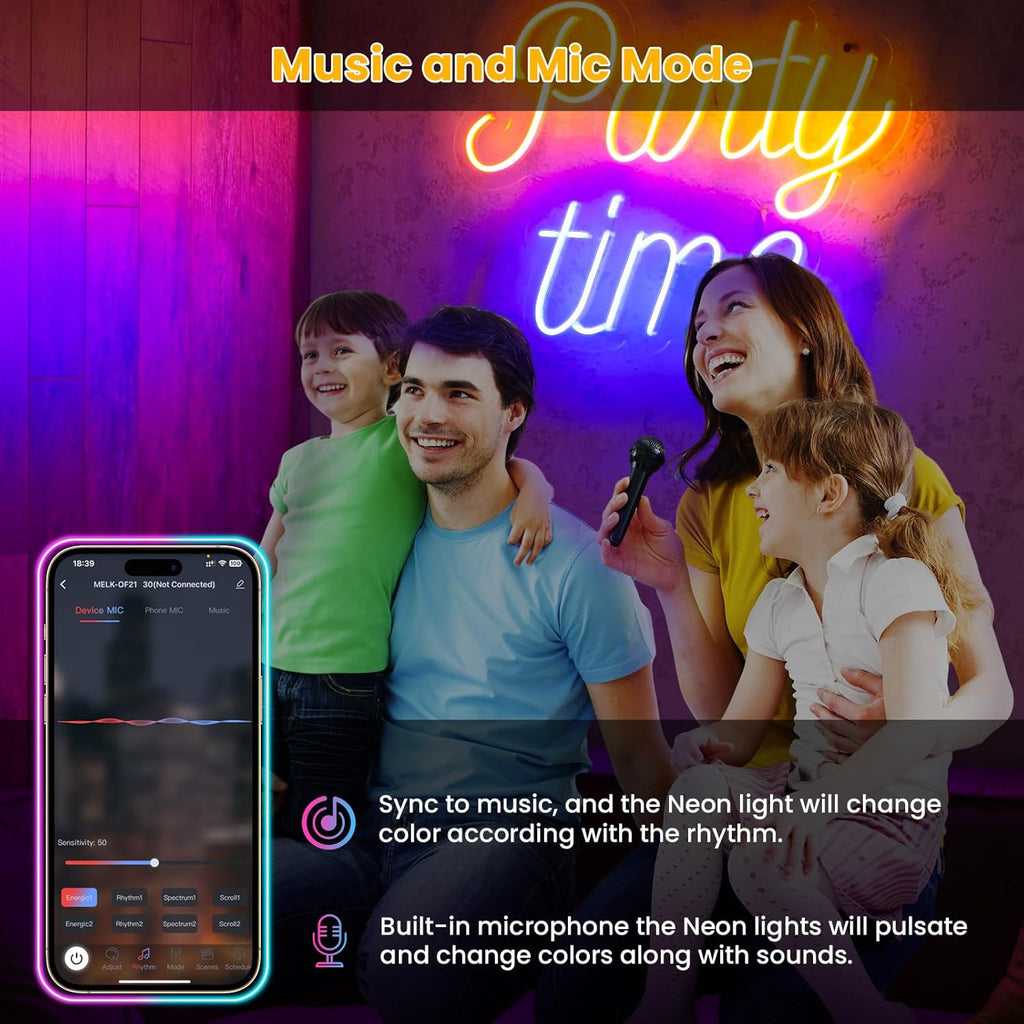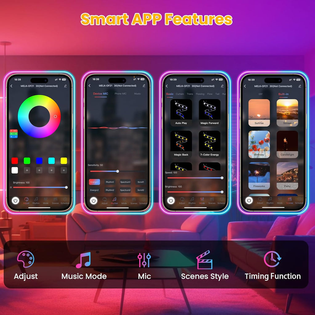 • Sync with Music and Remote Control: The neon light bar features a built-in microphone, allowing the lights to sync with music for dynamic color changes that match the beat. Choose from 29 dynamic modes via the mobile app or the 44-button remote. A convenient timer function lets you schedule lighting to suit your routine and create custom lighting scenes effortlessly.