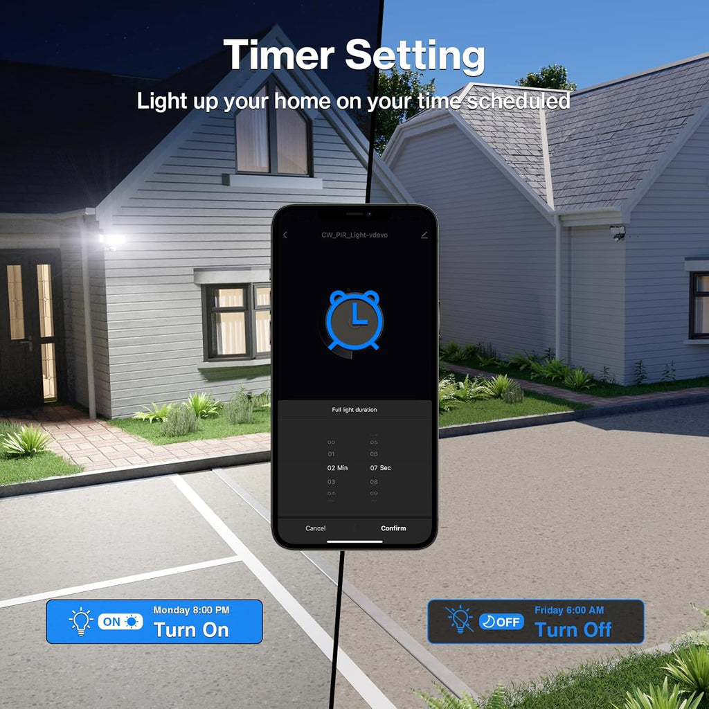 The 55W Smart Outdoor LED Flood Light is a feature-rich outdoor security light suitable for various settings like yards, garages, and gardens.