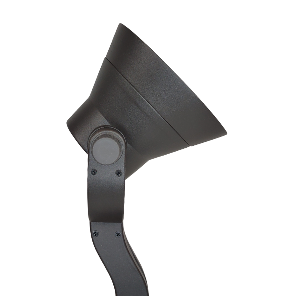 Its 10W LED 12V provides RGBW color temperature and is able to give a combination of 25,000+ colors, including 3000K Warm White, and 650 Lumens light which is why you can enjoy multicolor rich lighting features. It has a black coated heavy-duty cast aluminum body that defines its potent structural condition. It is 3.75" in length and 8.9" in height and a lens diameter of 5.1". This high beam tree spotlight has a wide beam angle of 65 degrees. Included with the fixture is the ground plastic spike for staking into the ground for a strong hold.