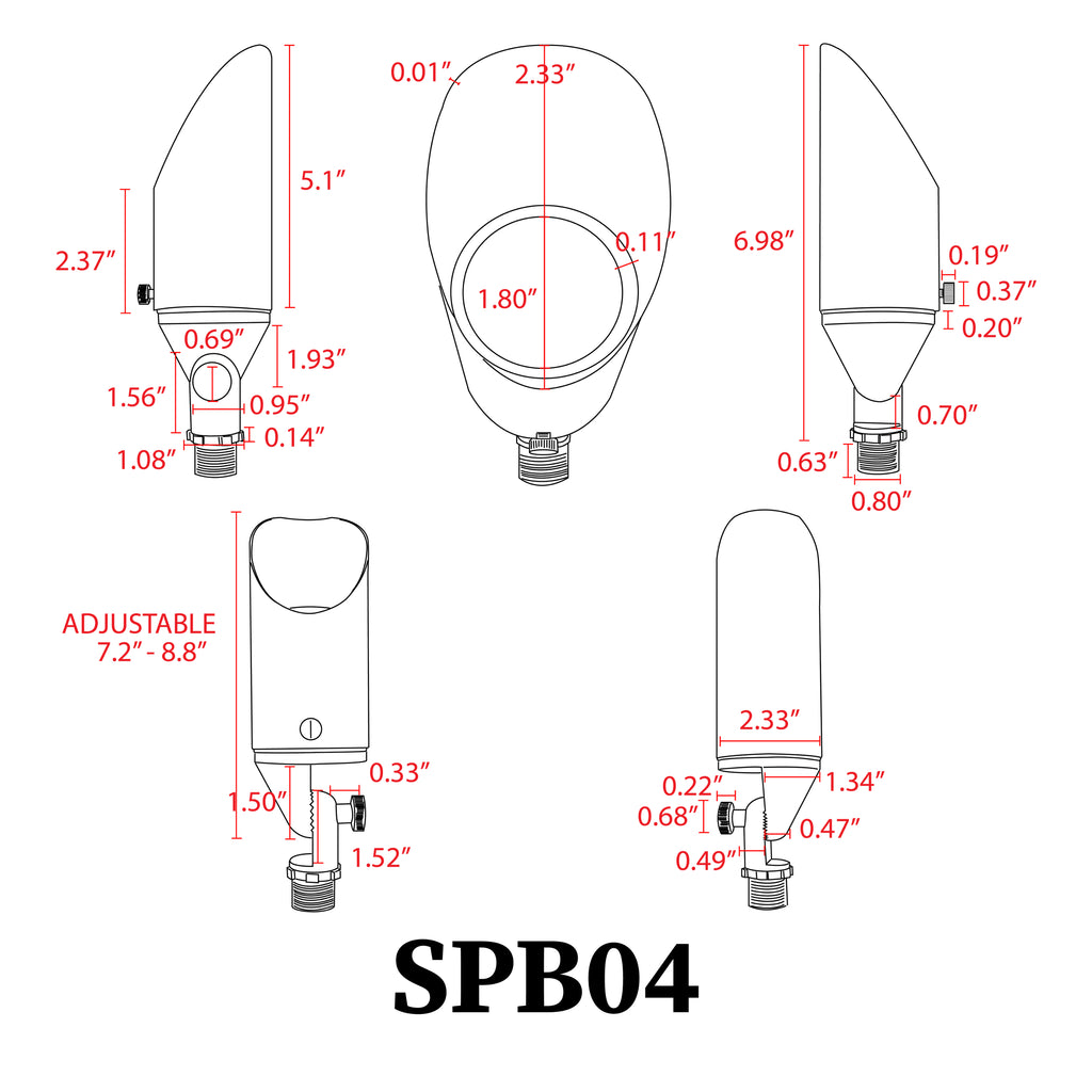 SPB04 Cast Brass Adjustable 12V Low Voltage LED Bullet Landscape Spotlight Outdoor Lighting