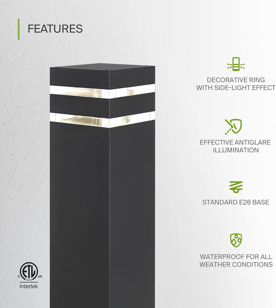 • Modern Bollard Style – Sleek, low-profile design complements contemporary architecture.
