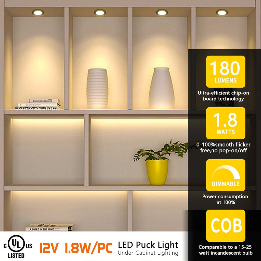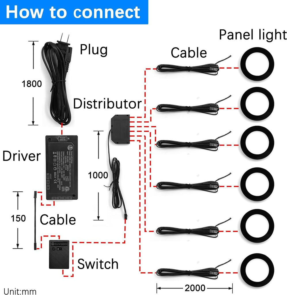 - 6 Puck Lights 0.4inch thin with 12 fixed screws,