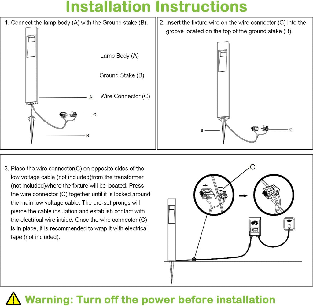 🚀 Fast Installation: We know your time is valuable. Our quick-install wire connector ensures a straightforward do-it-yourself installation that's both speedy and safe. Note that transformers and low-voltage wires, while not included, are necessary for operation.