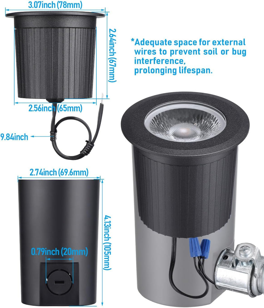Built with die-cast aluminum, these well lights are designed to withstand harsh weather conditions. Each unit includes embedded parts and waterproof wiring caps, ensuring long-lasting performance.