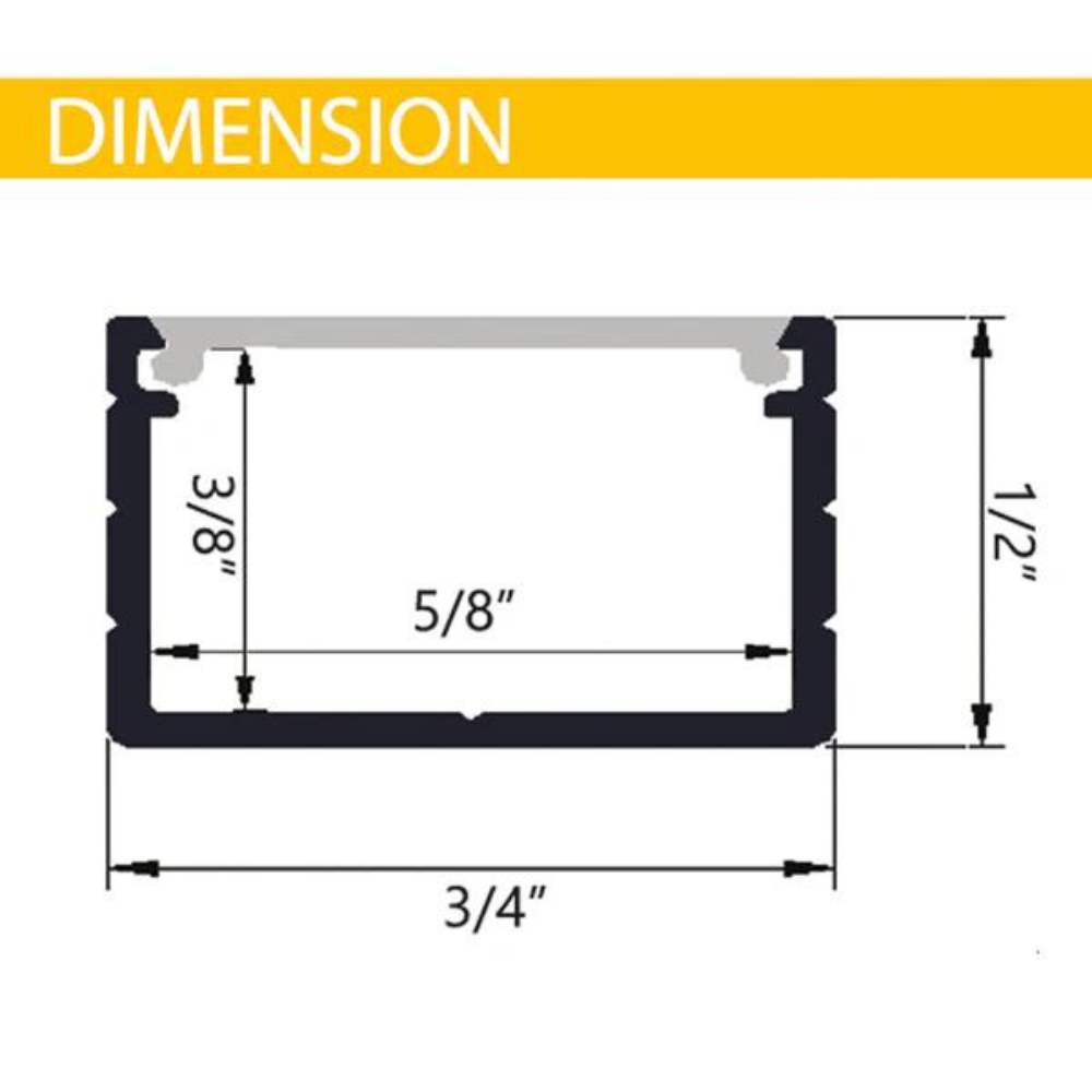 The rectangular aluminum channel is a smart and reliable choice for your cabinets, closets, or behind TVs and dressers. These channels can be installed anywhere.  Our rectangular aluminum channel rail can be decorated with an LED strip light of 0.47" in width. The frosted cover makes the LED strip light more fascinating and disperses the light more evenly.