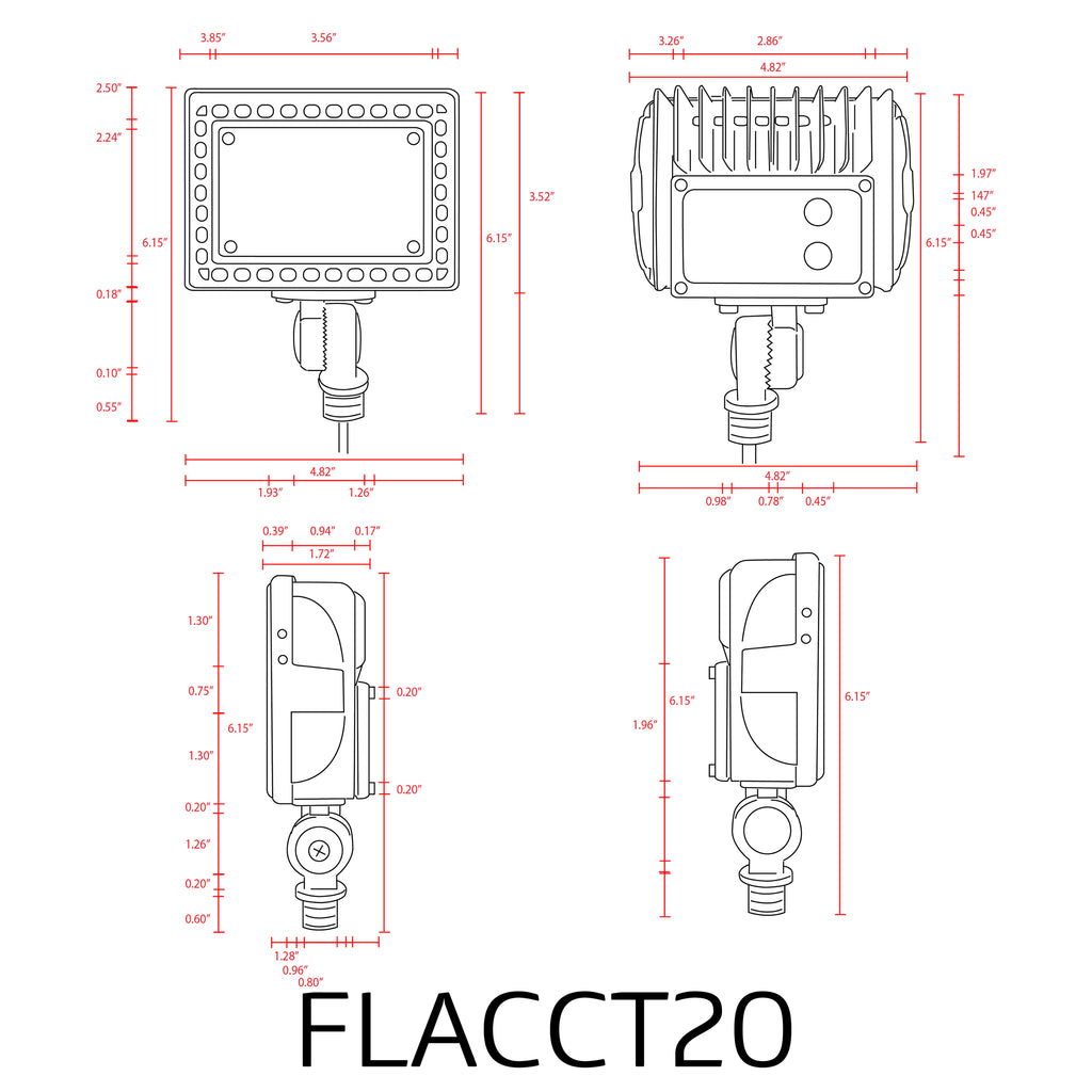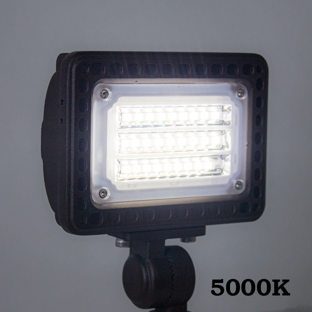 Una luz LED integrada de 12 W AC/DC 12 V le da una temperatura de color de luz blanca cálida de 3000 K. Esta luz de inundación LED de aluminio ajustable está construida con tecnología a prueba de agua IP65 para que pueda durar en muchas condiciones climáticas. El tamaño de esta luz de inundación de lavado direccional es de 5" (L) x 2" (W) x 3.5" (H).