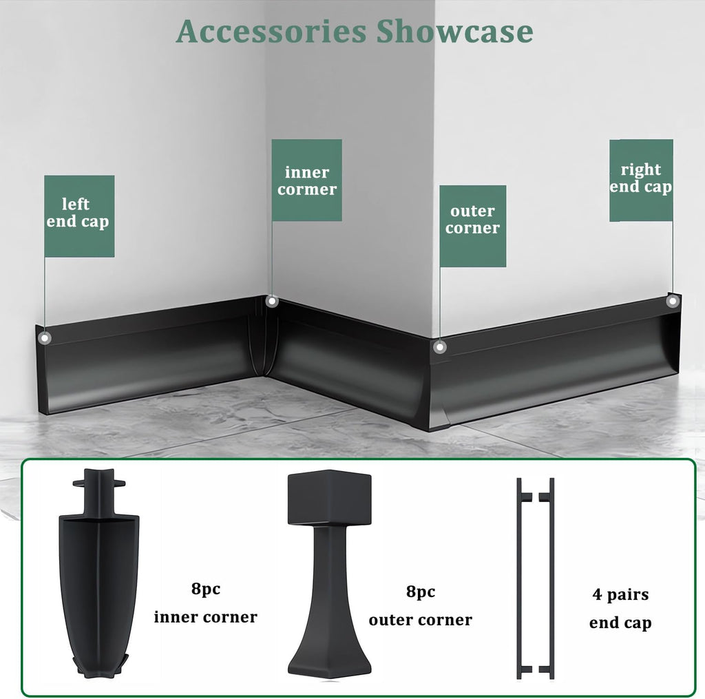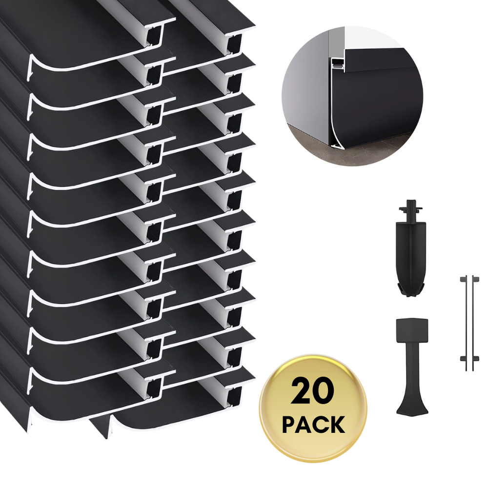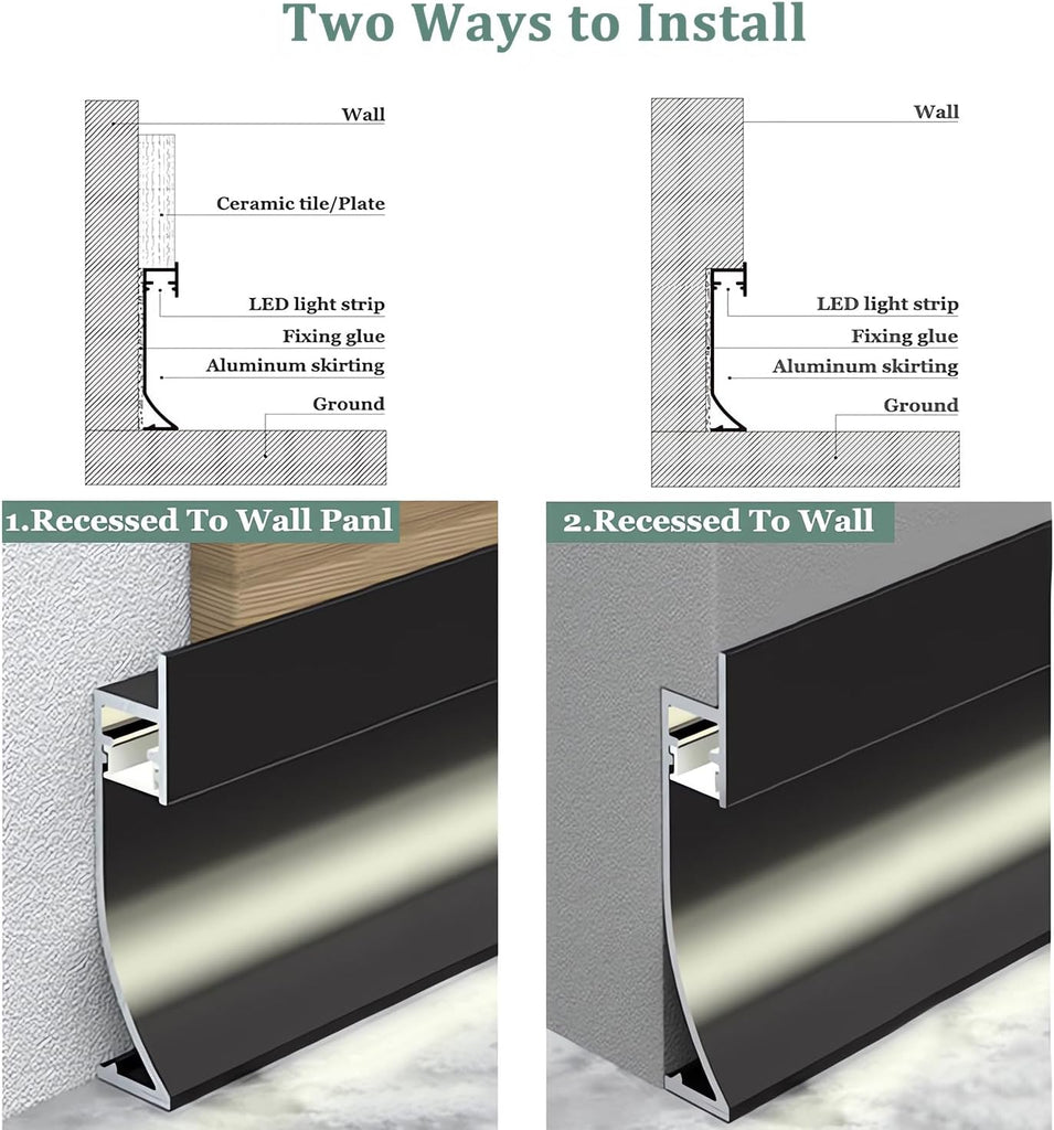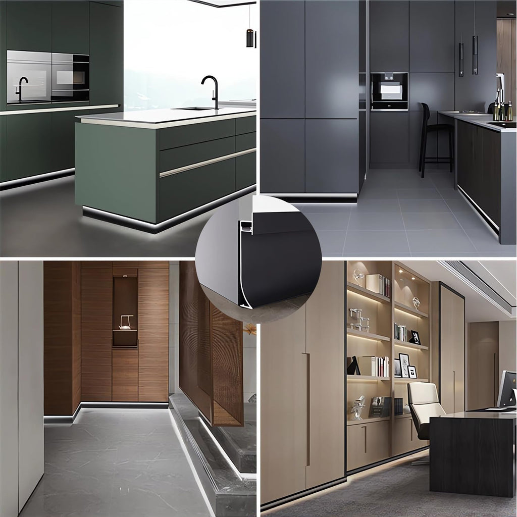 AC14 Skirting Board Black Aluminum Channel with White Frosted Plastic Cover 3.3FT/1M For Max Inner 10.7mm Width LED Strip Lights Pack of 7/10/20
