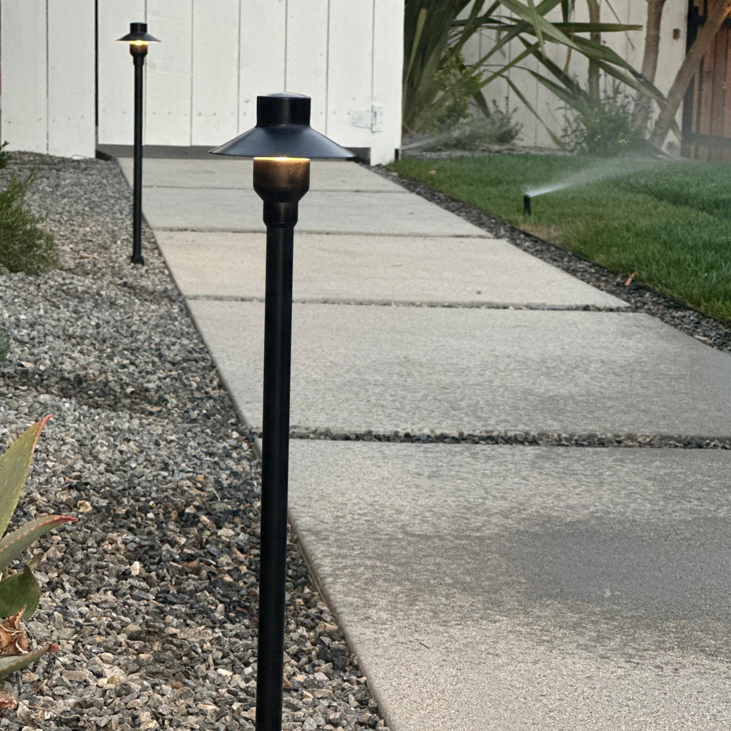 Pampa Lighting offers top-tier Path Lights for outdoor settings, such as gardens, patios, decks, driveways, etc. This PL-PL-SHB18 model features superior construction from heavy-duty solid brass and a brushed brass finish, making it one of the best in the Pampa Lighting series. Perfect for harsh environmental conditions—its ideal for creating a subtle illumination for any outdoor area. These metal garden lights are designed to provide lasting beauty and reliable lighting for your garden, enhancing the overall atmosphere with their durable, stylish build.
