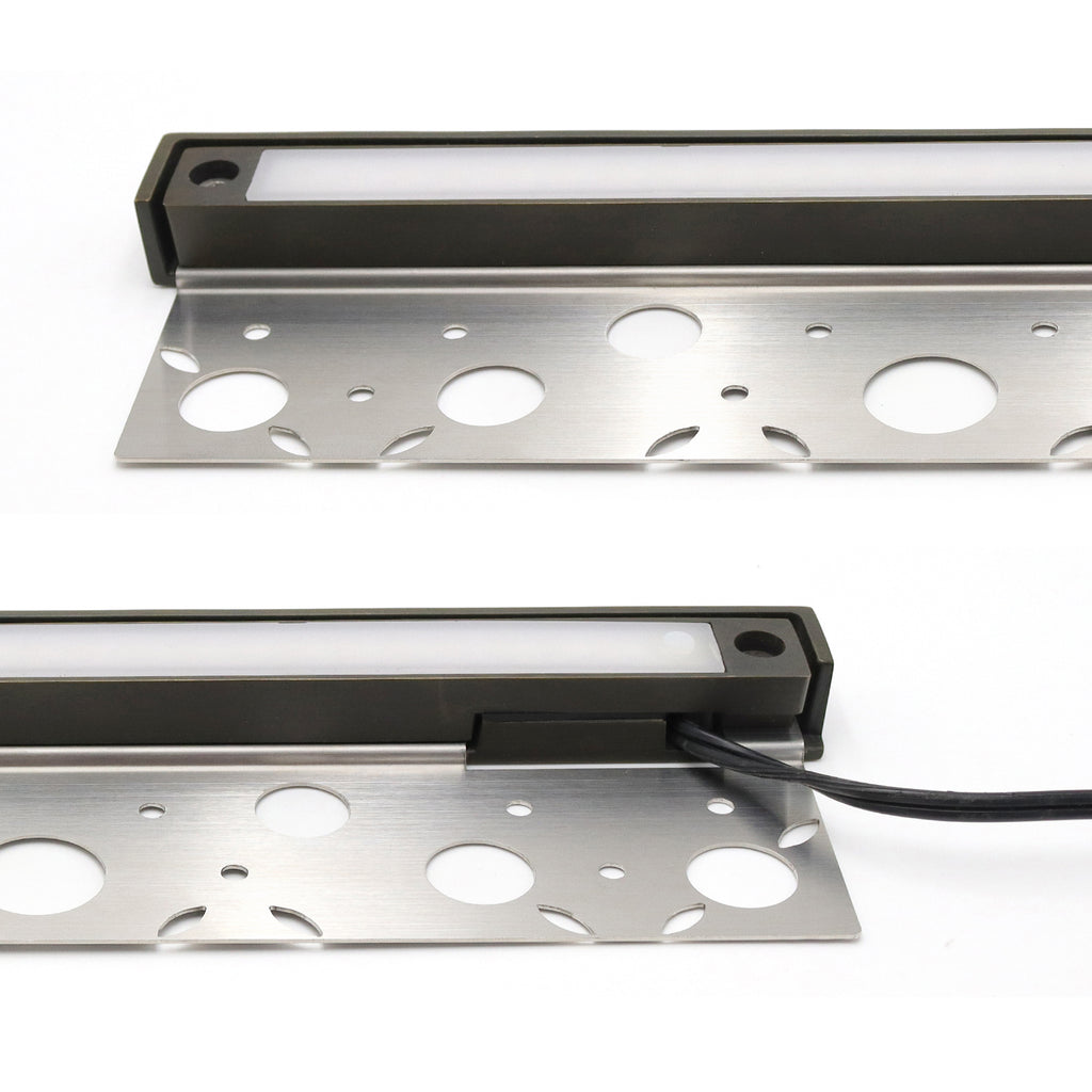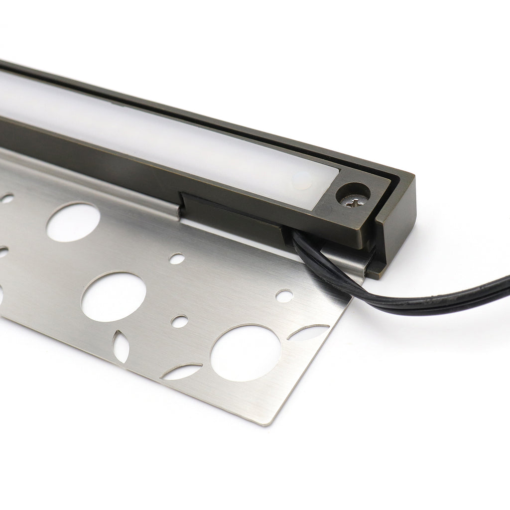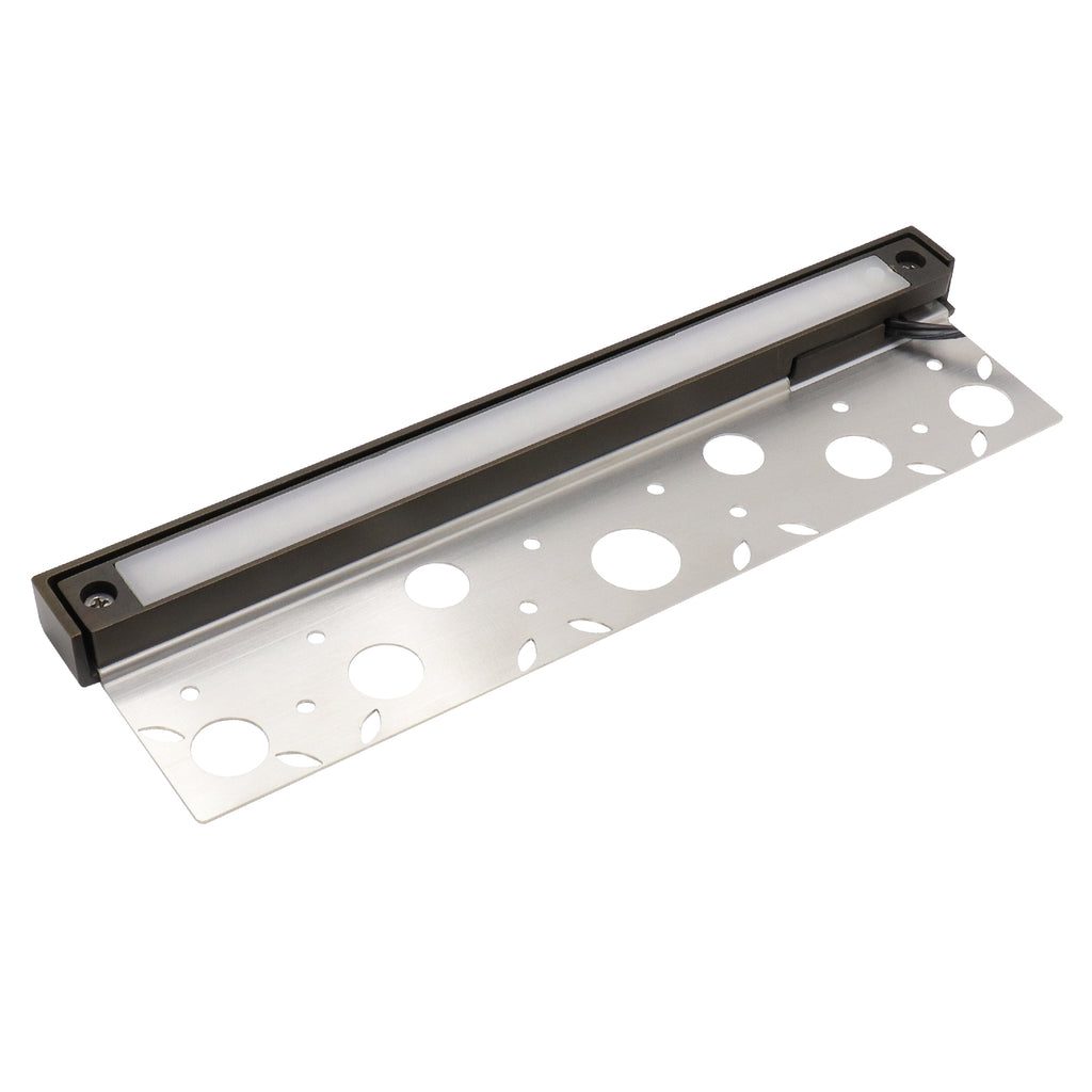Discover the HL12B04 Premium Brass Hardscape Light, perfect for enhancing your outdoor spaces. It also works wonderfully as a 12v outdoor wall light, providing efficient illumination for your exterior walls.This 12-inch light offers a 4W output with 400 lumens and RGB + warm white 2700K color temperature. Built with solid brass and stainless steel, it features fully encapsulated LEDs and a driver, serviceable parts, and two types of mounting brackets. IP65 rated for water resistance and ETL-compliant. Available in a light bronze finish. Order now for durable and elegant outdoor lighting!