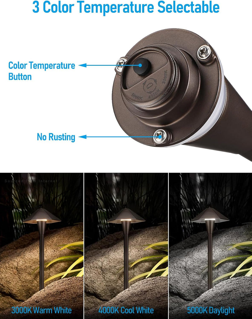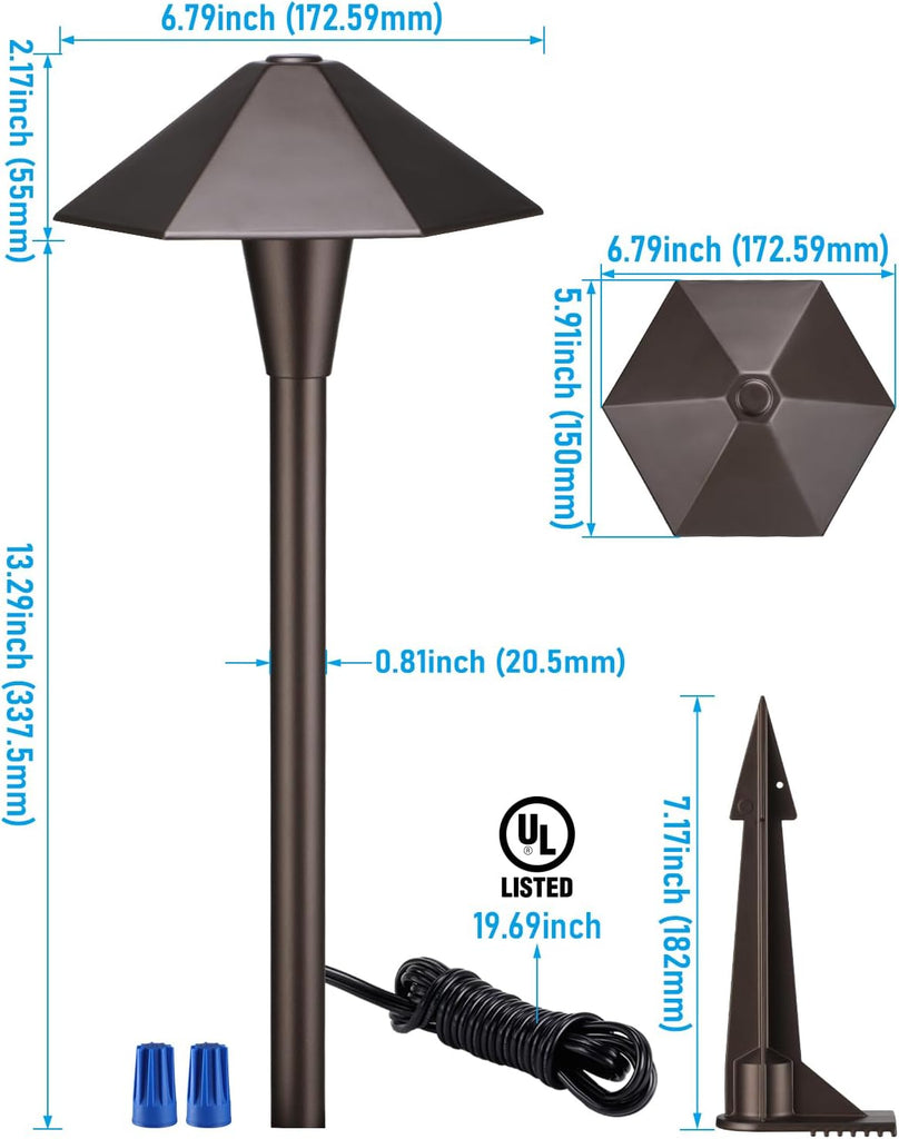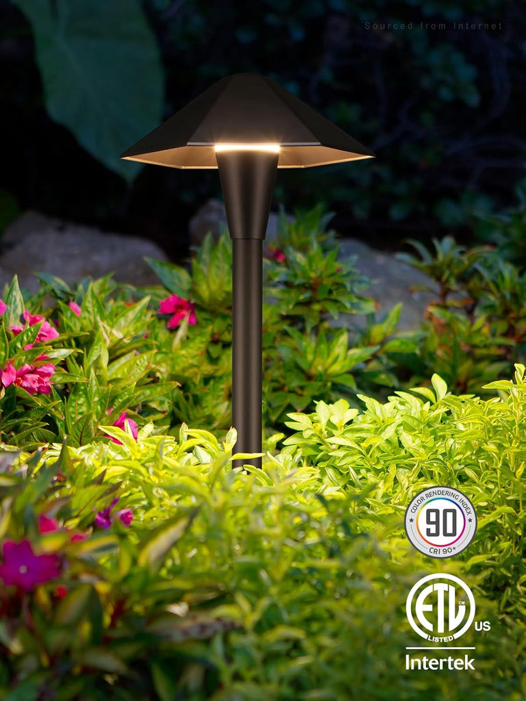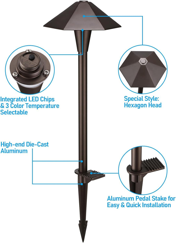 CDPAL03 Ombrello Spigoloso LED Landscape 3CCT Pathway Lights, 3000K/4000K/5000K, 5W 12-24V AC/DC Low Voltage Oil-Rubbed Bronze Hexagonal Outdoor Landscape Lighting
