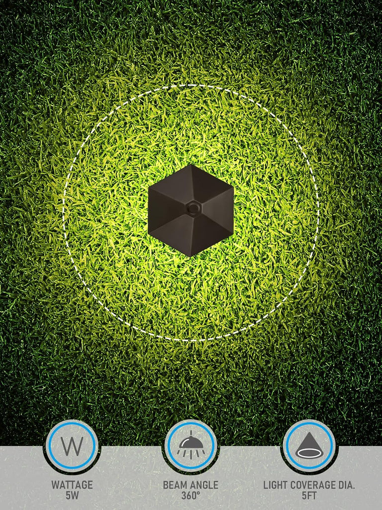 Discover the Ombrello Spigoloso Hexagonal Mushroom Pathway Light premium aluminum integrated up light with 3CCT 3000K/4000K/5000K 5W power, 140lm brightness. Featuring IP65 water resistance, and anti-moisture connections. Perfect for any outdoor setting with cast aluminum construction and ETL compliance.